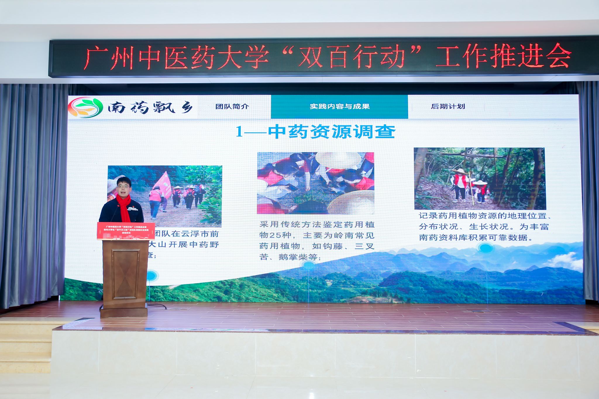 On the afternoon of January 24th, Guangzhou University of Chinese Medicine (GZUCM) held the work promotion meeting for the “Double Hundred Action” and the winter social practice launch ceremony for the “Hundred Counties, Thousand Towns, Ten Thousand Villages High-Quality Development Project” College Student Youth Task Group in Shuitou Town, Fogang County, Qingyuan City. Qiu Yahong, Deputy Secretary of the CPC GZUCM Committee, Zhai Xuemei, Deputy Secretary of the Qingyuan Municipal Party Committee, and Fan Chun, Deputy Secretary of the Provincial Committee of Guangdong Youth League, unveiled GZUCM Fogang Work Station for the Guangdong “Hundred Counties, Thousand Towns, Ten Thousand Villages High-Quality Development Project” College Student Youth Task Group and GZUCM Fogang “Double Hundred Action” Social Practice Base.