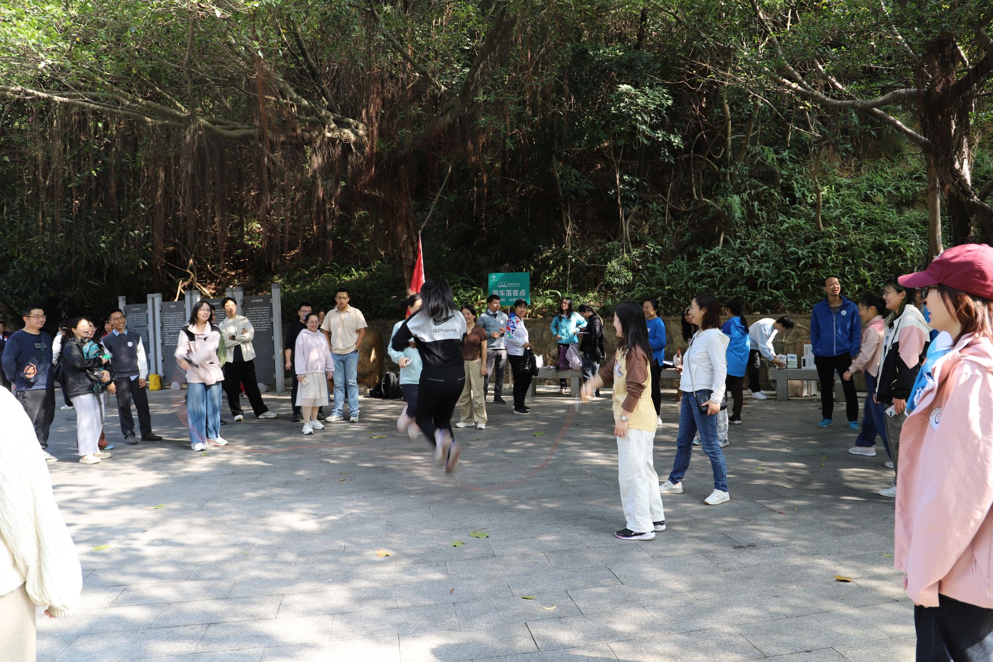 各二级工会队伍打着会期,兴高采烈向山顶“黄河石”广场前进,抵达顶峰后进行了集体合影留念,部分分工会还组织了趣味运动会、团建活动等。本次活动积极响应国家全民健身号召,增强教职工健康意识,充分展现了我校教职工团结协作、积极进取的精神风貌。