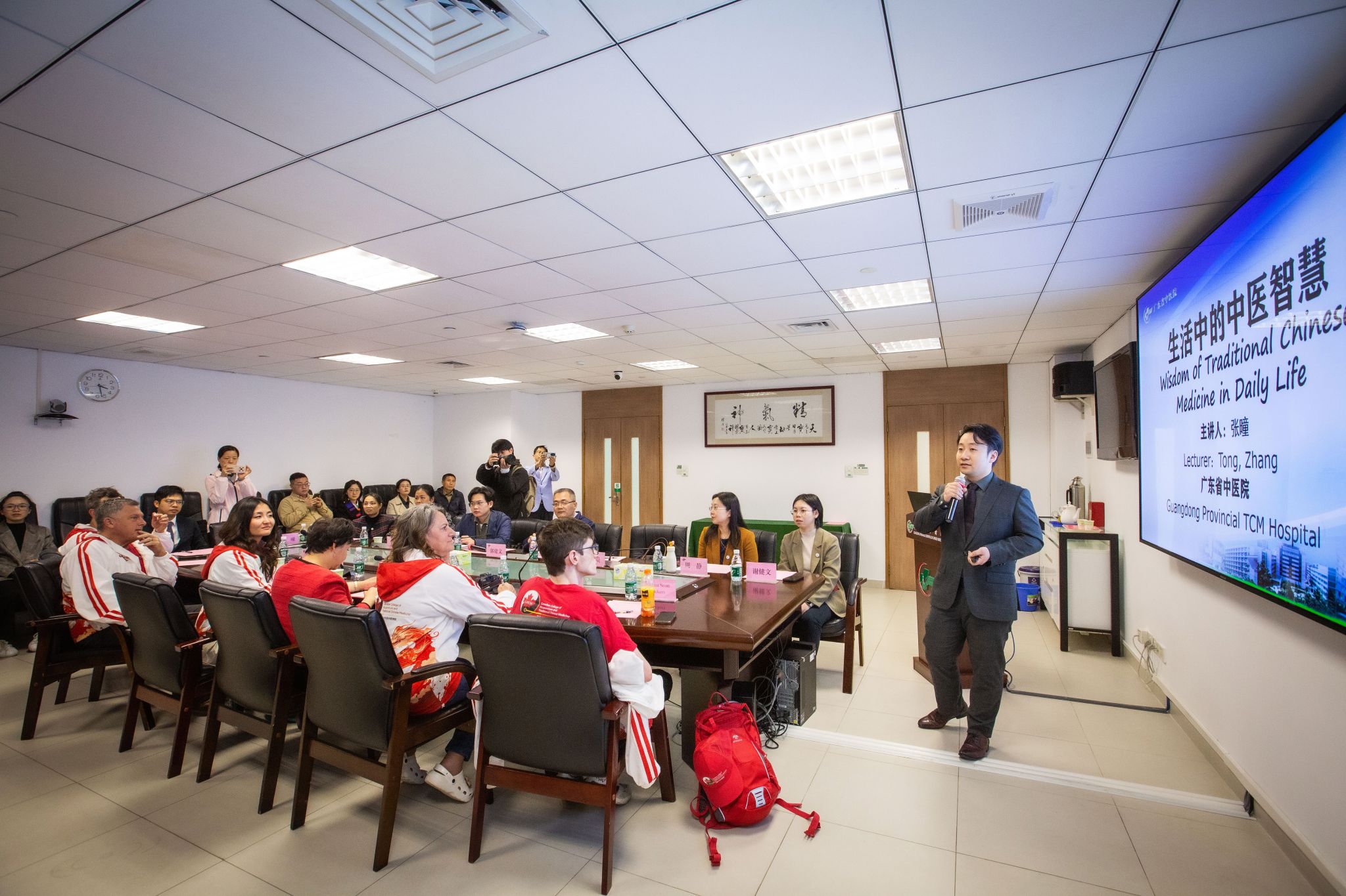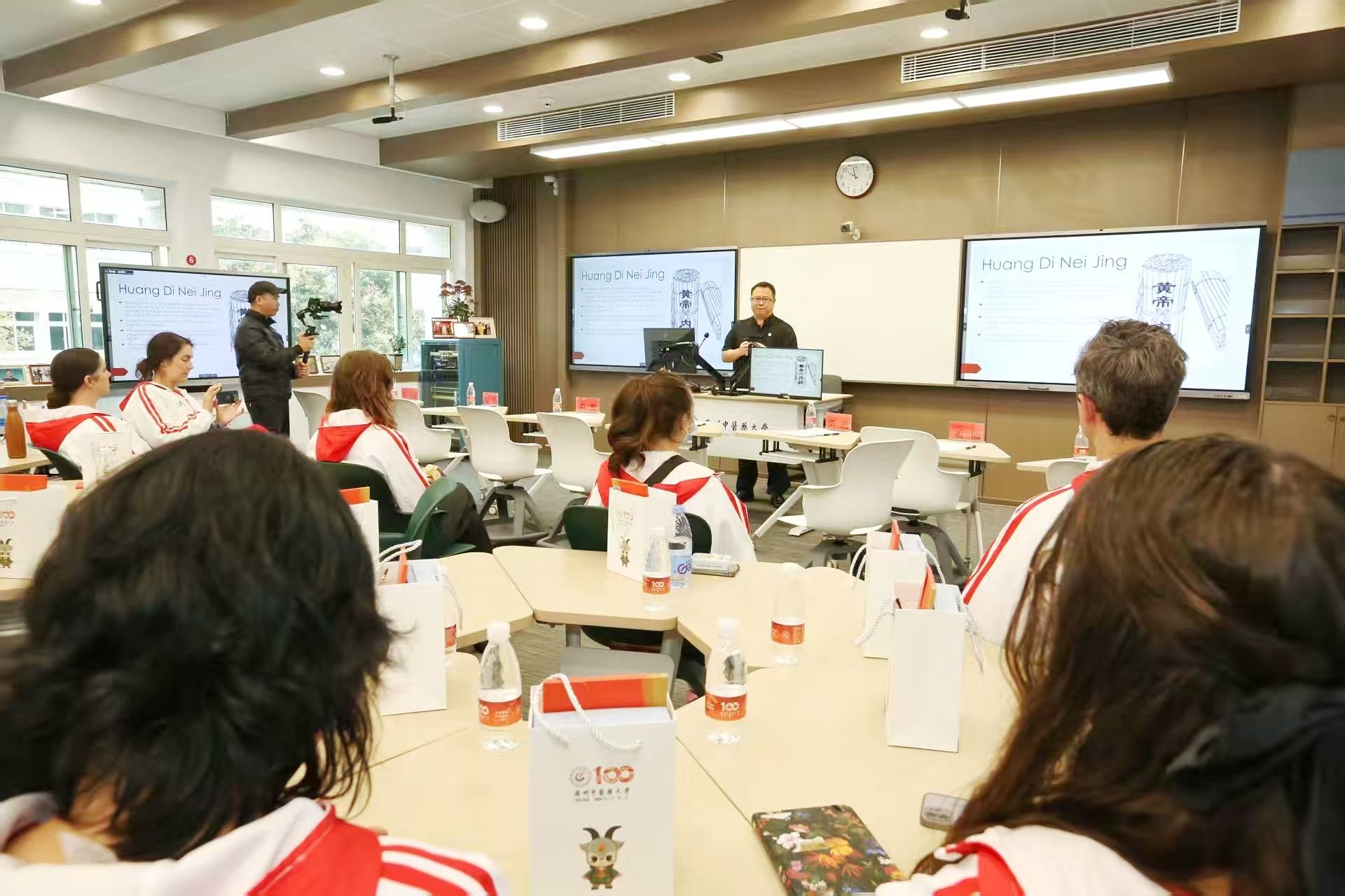 开营仪式结束后,taptap点点基础医学院张小虎副教授为交流团讲授中医药主题课程。深入讲解了《黄帝内经》所蕴含的整体观思想,让加拿大师生领略到中医药独特的思维方式和深厚的文化内涵。