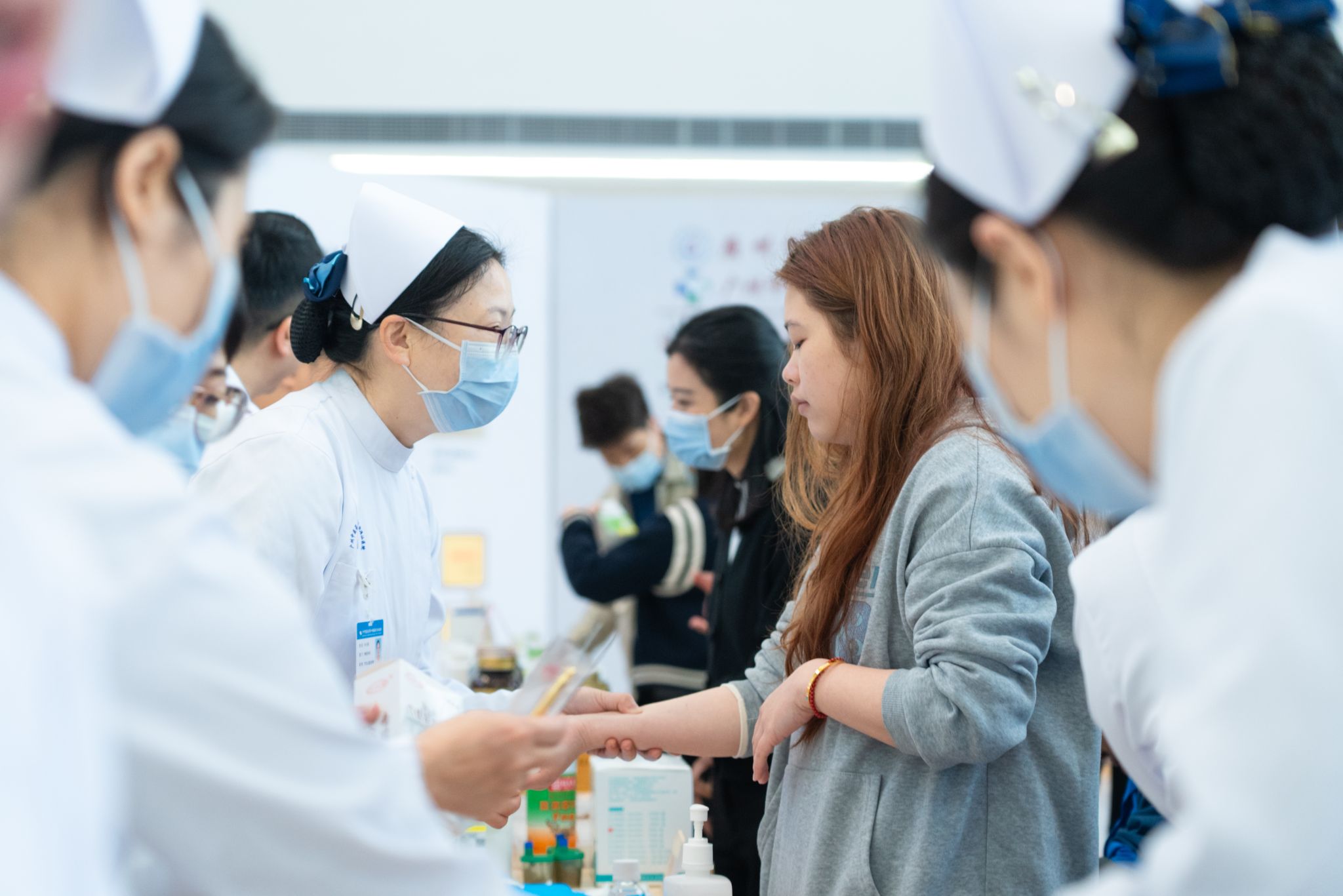 现场还开展了中医适宜技术体验活动。在传统中医疗法体验区,铜砭刮痧、艾灸、耳穴贴压、穴位敷贴、中药封包、揿针、火罐、眼部刮痧、眼部蒸熏、中药沐足、核桃隔物灸等中医特色治疗服务吸引了众多市民体验,医护团队现场介绍中医适宜技术的基本原理和特色,并结合市民身体状况,量身定制个性化中医疗法方案。