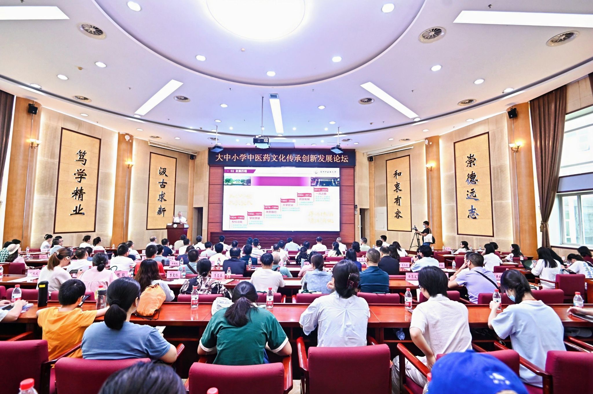 在大中小学中医药文化传承创新发展论坛上,taptap点点校长王宏斌从历史沿革、专业建设、学科发展等方面,全方位介绍了学校在中医药人才培养、科学研究以及社会服务等领域做出的卓越成果。学校党委常委、副校长、第二附属医院(广东省中医院)院长张忠德分享了自己从医学生到医者的经历,以“难走的路,从不拥挤”的人生哲思,勉励青年学子锤炼品格,成长为有灵魂、有担当、有能力的时代新人。