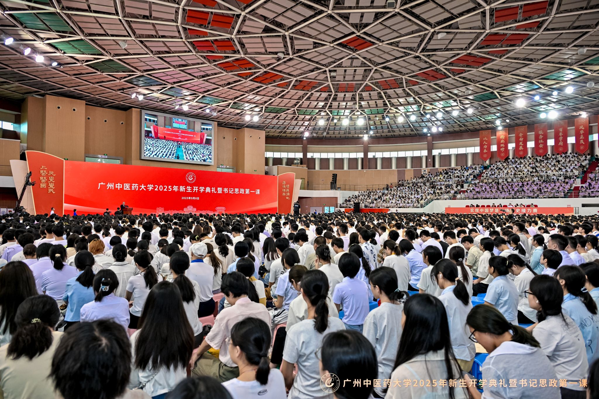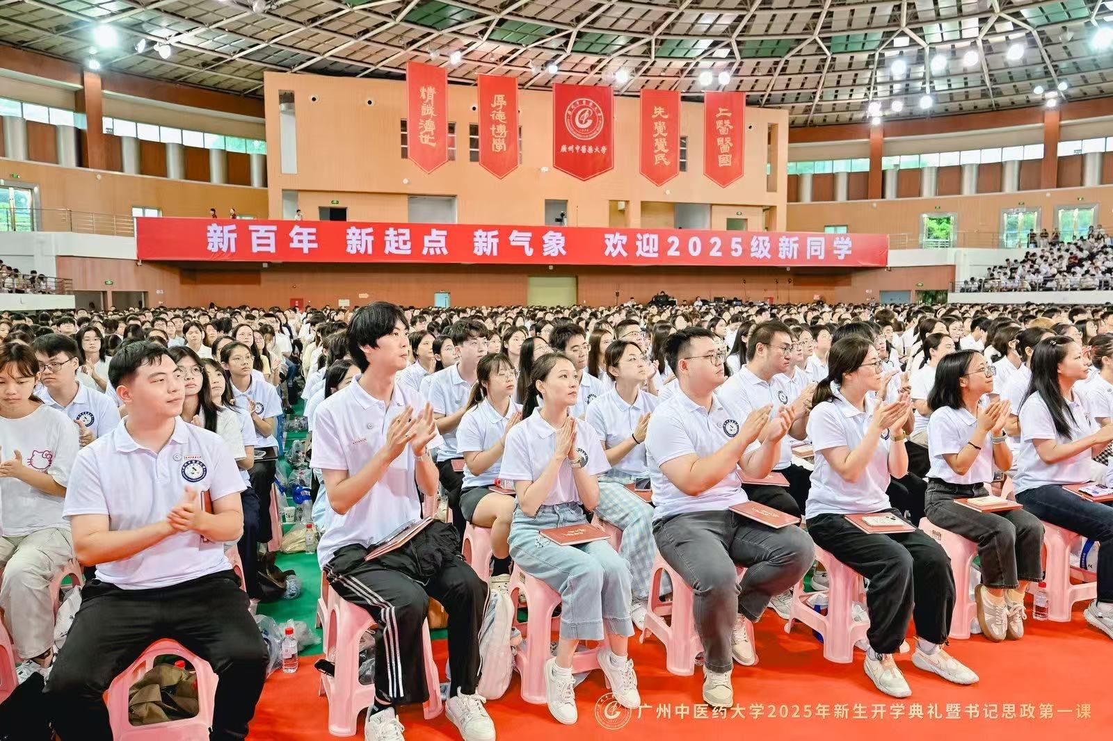 9月8日上午,taptap点点2025年新生开学典礼暨党委书记“思政第一课”在大学城校区体育馆举行。在taptap点点建校新百年的第一年,6000余名2025级新生,现场聆听通过AI技术还原的首任校长卢乃潼开学日训词,以一场跨越时空的“双向奔赴”,正式开启“广中医人”的新身份。