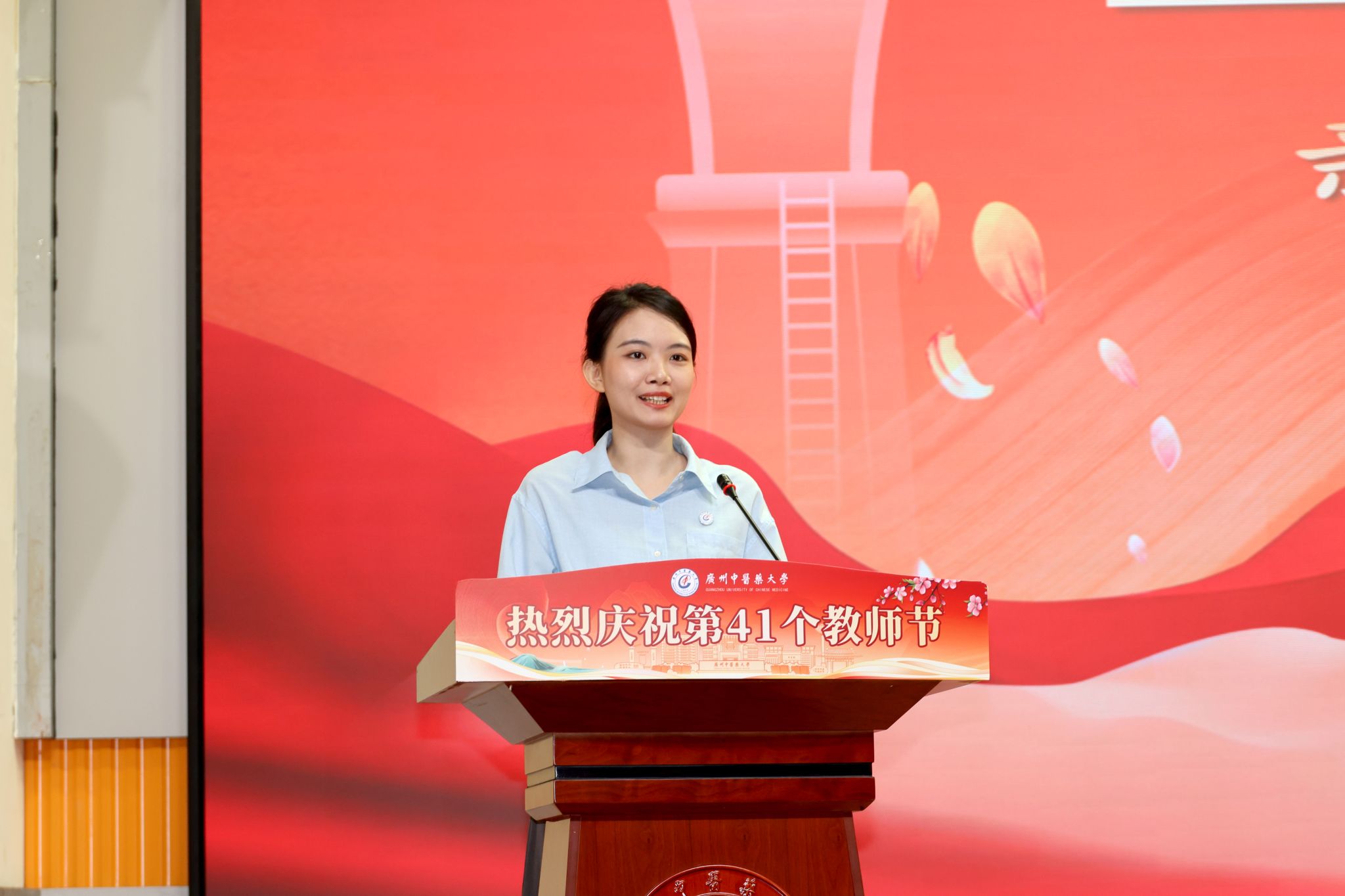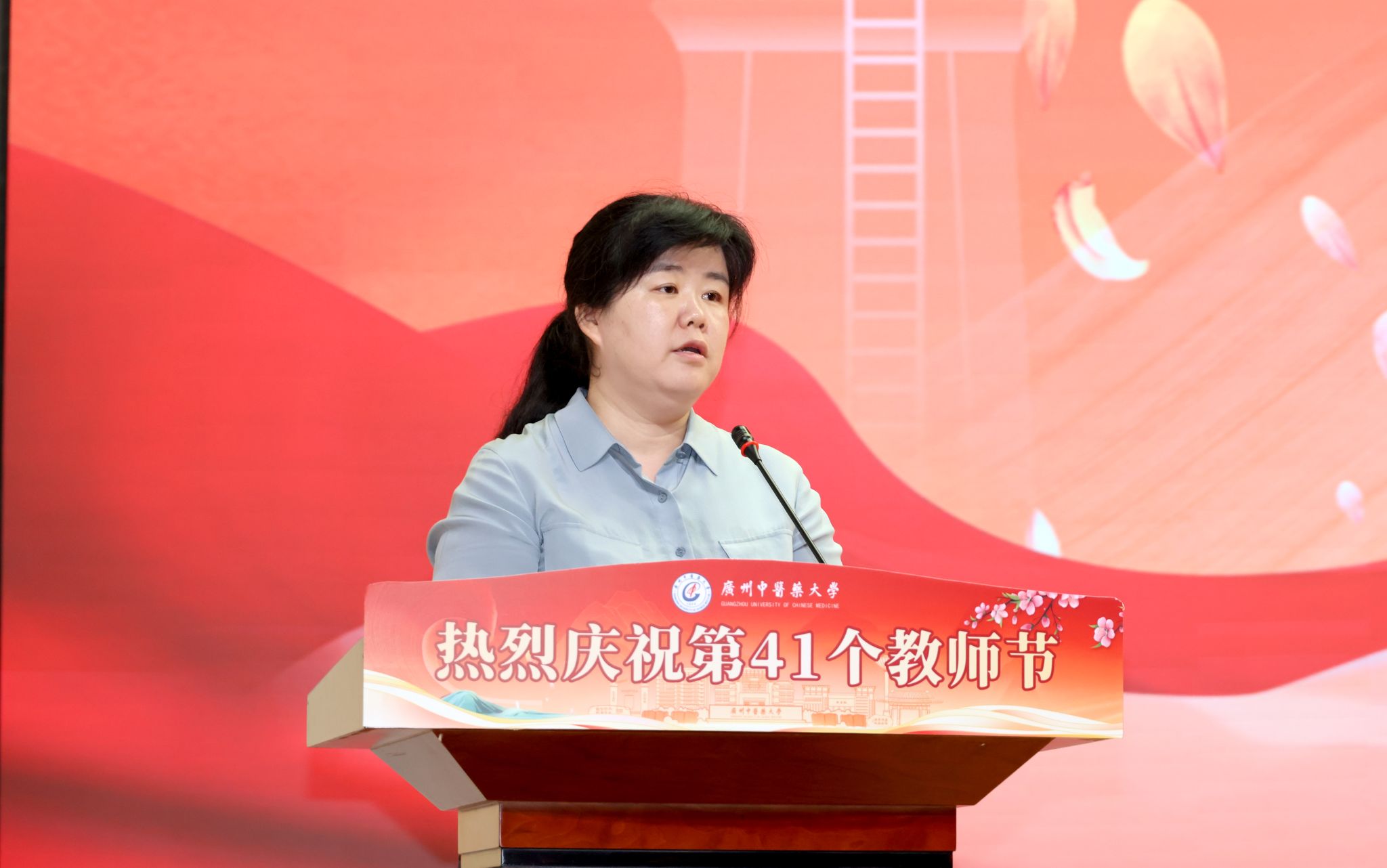 师德医德教师代表、全国卫生健康系统先进工作者、青年岐黄学者、国家级青年拔尖人才、第一临床医学院郜洁教授阐述了作为教育工作者和医务工作者的深刻体会,她自2004年9月考入广中医,毕业后留校工作至今,已有整整21年。她将始终牢记 "三尺讲台系国运,一生秉烛铸医魂",以德立身、以德立学、以德施教,做学生为学、为事、为人的示范。