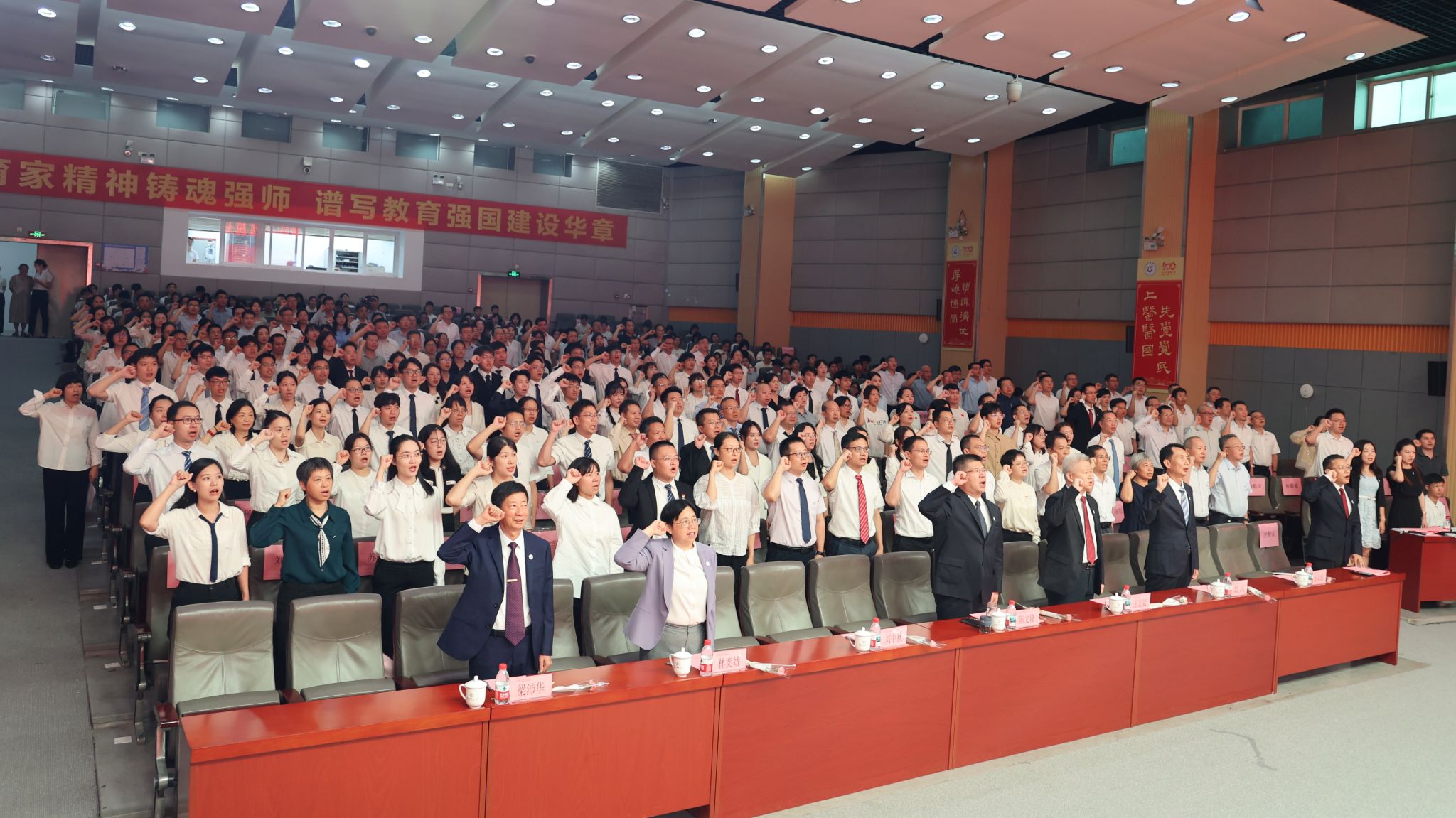 大会在庄严的国歌声中拉开了帷幕。在中药学院学院白云龙教授的领誓下,全体教师进行了庄严宣誓。