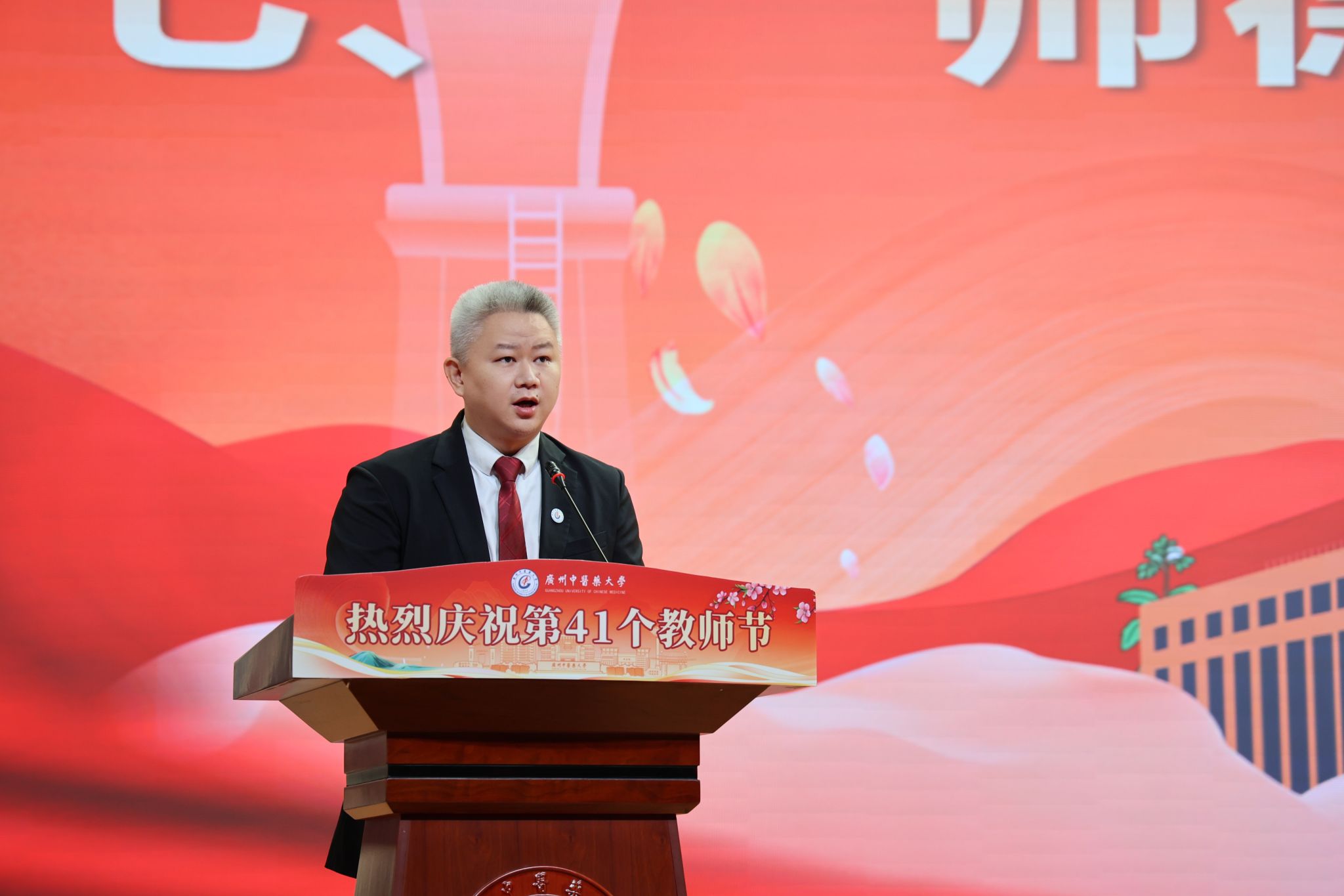 荣休教师代表宋健平教授从教师、科研工作者的角度发表了荣休感言。他表示“荣休”不是终点,而是另一段新旅程的开始,他将换一种方式,继续关注和支持学校的发展,为中医药的传承创新贡献余热。