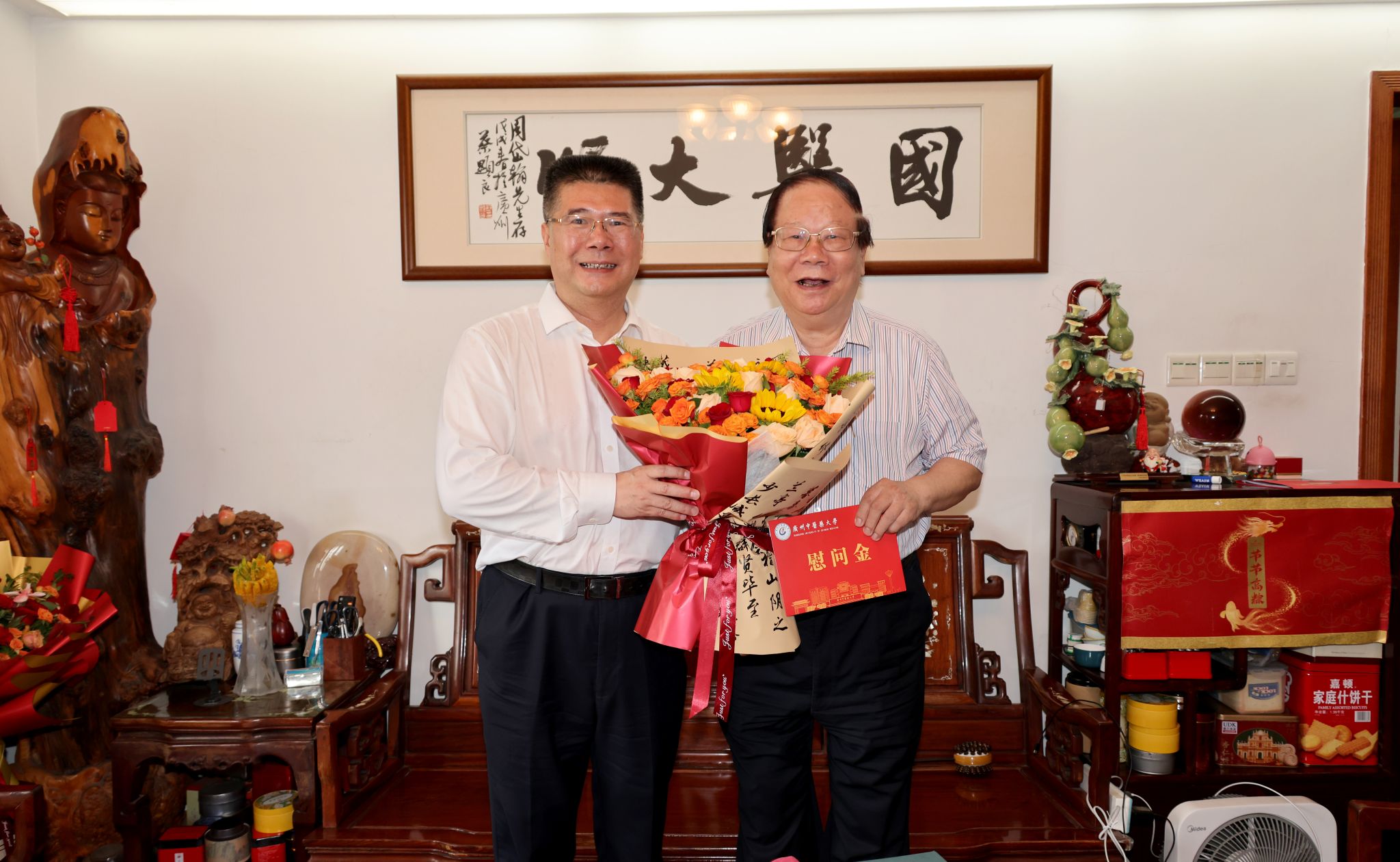 在第41个教师节来临之际,学校党委书记陈文锋、校长王宏斌等全体校领导分别到各教学、科研单位走访,慰问国医大师周岱翰教授、国医大师林毅教授、刘良院士、国际知名疟疾防治专家李国桥教授等教学、科研、医疗一线的教师代表和离退休人员代表,感谢他们辛勤的付出,对他们致以诚挚的问候和节日的祝福。