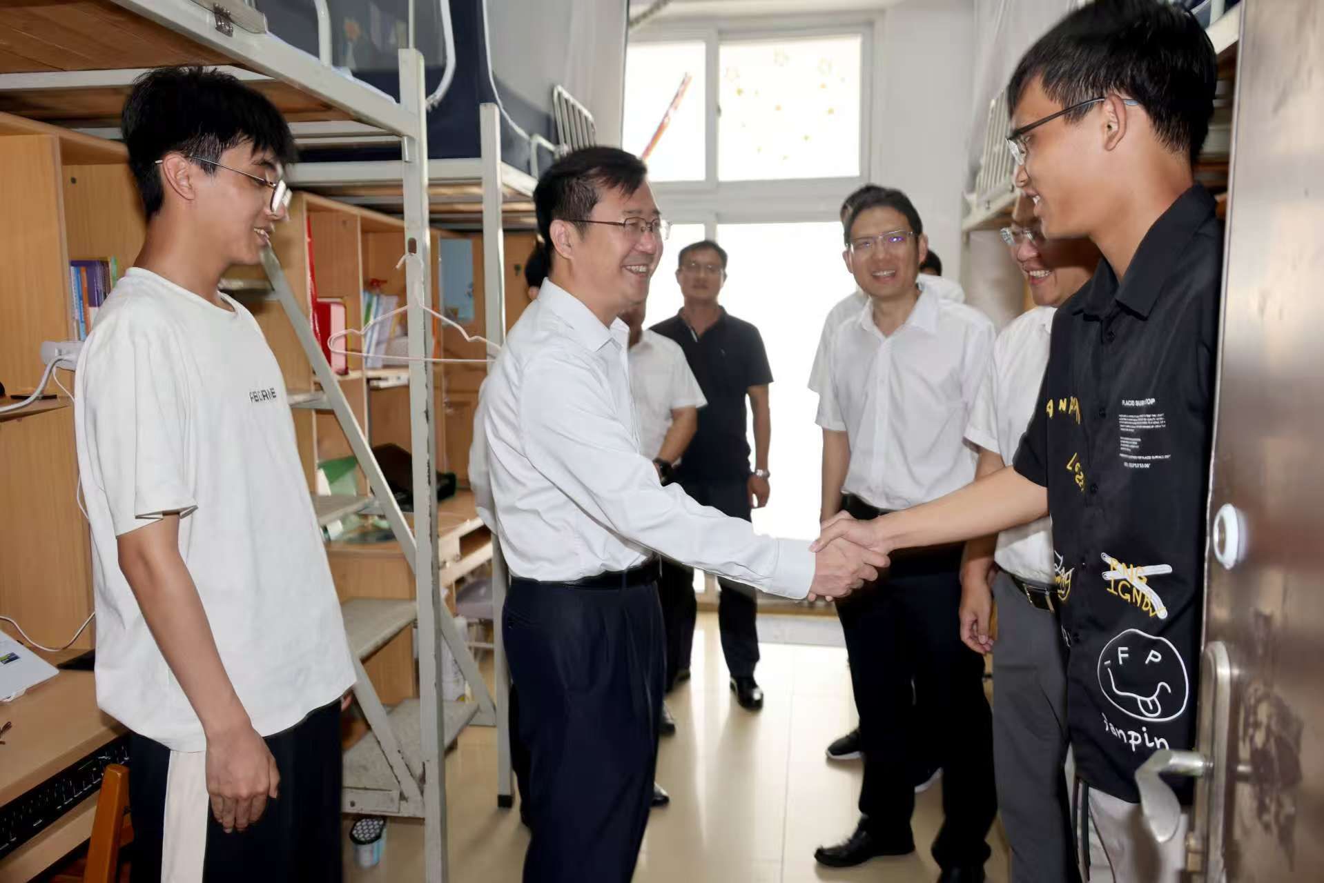 会前,李文秀一行深入大学城校区生活区亲切看望2025级中医学海南定向学生,并实地检查位于大学城的广东省中医药科学院等第二临床医学院学生学习、实践场所。