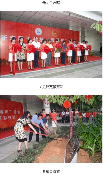 6月20日,共青团广东省委副书记曾颖如,广东省卫生厅党组书记黄小玲(我校第十一、十二届团委书记),中共汕尾市委副书记郑雁雄(我校第十三、十四届团委书记)、原广州美术学院党委副书记何广基(我校第五、六、七、八届团委书记),我校离退休干部杨复(我校第一、二、三、四届团委干部)、杨永彪(我校第五、六届团委干部)等嘉宾同我校领导黄斌、孙晓生、陈英华、王新华一起,兴致勃勃地在我校大学城校区学生活动中心前种下一棵"青春树",象征着我校共青团事业永褒青春。这是当日学校党委举办的纪念我校第一次团代会召开五十周年系列活动之一。
