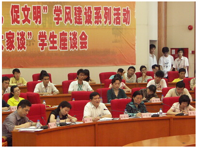 根据学校党委"争创一流学风、教风、校风,人人为评建作贡献"活动总体部署,学风建设工作组开展了"迎评建、促文明"学风建设系列活动。目前已进入学风建设系列活动的第二阶段。本阶段将进行"评建工作大家谈"学生座谈会。通过"评建工作大家谈"学生座谈会收集学生学习生活中的建议意见,切实解决学生遇到的问题,营造良好的校园氛围。
