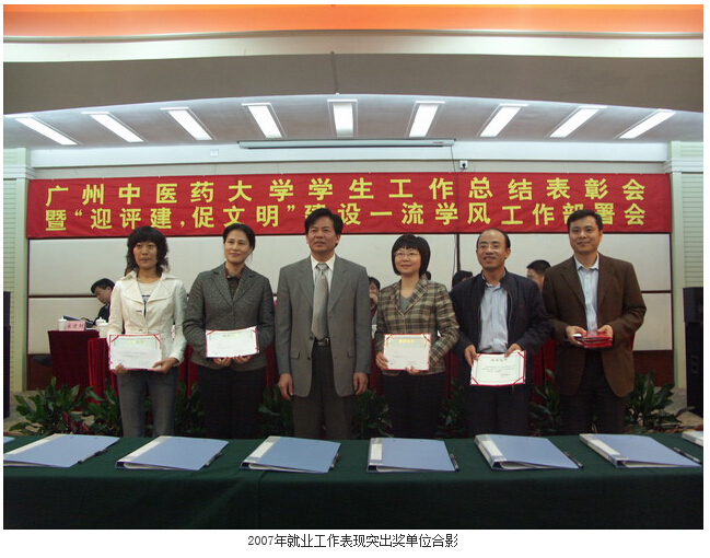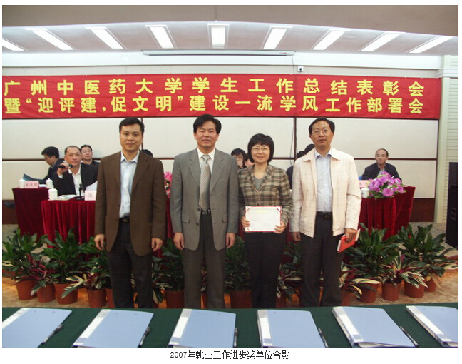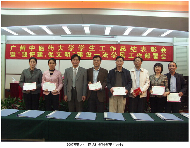 接着党委孙晓生书记宣读了《关于表彰2007年就业工作先进单位的决定》、《关于我校辅导员荣获"广东省普通高等学校2007年优秀辅导员"称号的通知》两项决定,并亲自为获奖的单位与同志颁奖。