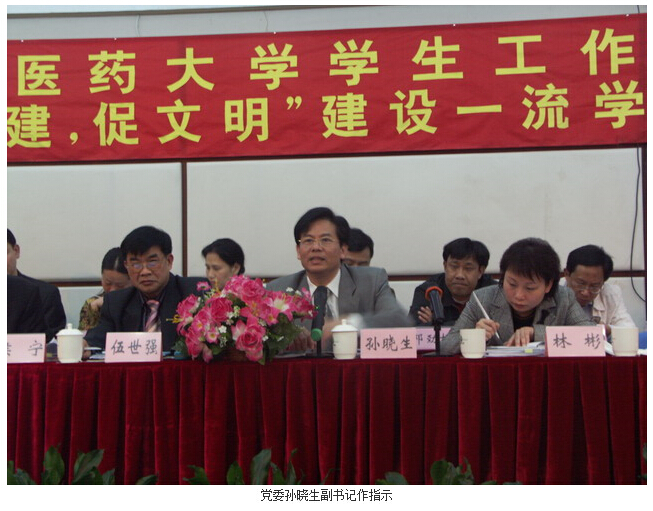最后,党委孙晓生书记在肯定过去一年学生工作所取得各项成绩的基础上,要求各级学生工作队伍要围绕着今年学校的中心工作和学生处提出的学生口的工作思路,明确定位,各施其职,积极推动学生工作更上一层楼。在迎评和学风建设方面,孙书记提到,要全力以赴迎评促建,迎评工作要找准自己的工作位置,当前的工作要做到"以迎评促建为中心,以指标体系为指南,以素质基地为载体,以校园文化为主线"。我们要有务实的工作作风,良好的精神的状态,端正作风,创造性地开展工作。会上,孙书记还介绍了在美国讲学考察期间的体验和收获。孙书记在结合普林斯顿大学、哈佛大学、麻省理工大学考察期间的所见所闻所感结合学校的建设与发展给学生工作队伍指明了工作方向,要求我们应秉承为国家服务的思想,学习国外一流学校最先进的办学理念,解放思想,放眼世界,寻找差距,科学发展。