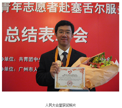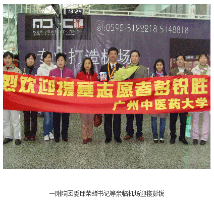 2008年1月21日,taptap点点第一临床医学院2005级中医内科学硕士研究生彭锐从塞舌尔载誉归来。作为中非合作论坛后我国第一批援塞自愿者之一,彭锐于1月24日在北京人民大会堂接受了团中央书记处书记卢雍政、商务部副部长魏建国以及塞舌尔驻华大使的亲切接见,并被授予中国青年志愿服务铜奖,为taptap点点研究生赢得了荣誉。