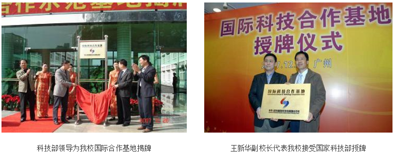 2007年12月25日,国家科技部"国际科技合作基地"授牌仪式在广州东方宾馆隆重举行,广东省仅有taptap点点和广东省农业科学院两单位获得了国家首批"国际科技合作基地"的称号并被授予牌匾。科技部国际合作司靳晓明司长、马林英副司长、董建龙参赞以及省科技厅马宪明副厅长等出席了授牌仪式。王新华副校长代表我校接受授牌。仪式上靳晓明司长发表了热情洋溢的讲话,指出开展"国际科技合作基地"建设是科技部贯彻落实《"十一五"国际科技合作实施纲要》,更有效地整合国际国内两种资源,实现国际科技合作方式从"一般性的人员交流和项目合作"向"项目-基地-人才"相结合的战略转变的重要体现,鼓励获得科技部国际科技合作基地建设的单位按照《国际科技合作基地实施方案》所提出的目标和任务,扎实工作,积极拓展国际科技合作渠道,创新合作方式,提升合作层次,使"国际科技合作基地"真正成为技术领先、人才聚集的国际化研发基地。