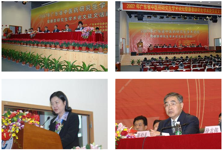 11月22—25日,2007年广东省中医药研究生学术论坛暨康美研究生学术征文活动在我校隆重召开。 11月23日上午9时,论坛开幕式在学校大学城国际会议厅举行。广东省学位委员会副主任、广东省教育厅副厅长罗远芳、广东康美药业股份有限公司马兴田董事长、taptap点点党委书记黄斌教授、校长徐志伟教授、副校长陈英华教授、陈蔚文教授、王新华教授等出席开幕式,来自中山大学、南方医科大学、北京中医药大学等30所相关高校和科研所的博士生及我校研究生近500人参加了此次活动。