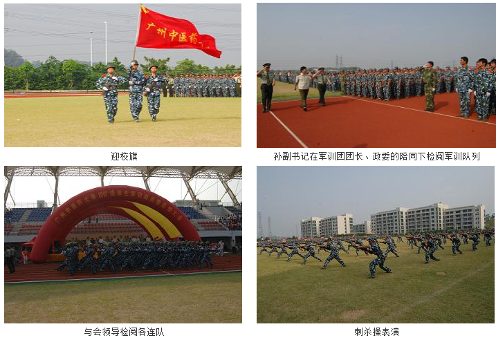2007年9月21日下午, 2007级新生军训阅兵暨总结大会在我校大学城校区体育场隆重举行。学校党委孙晓生副书记,陈英华副校长,林培政副校长,广东省教育厅体卫艺处侯波科长,中国人民解放军军事体育进修学院士官系主任林建棣大校,三大队政委徐兆安中校,军务科康天东少校,军训团团长敬泽龙少校,军训团政委谢湘军少校,省内兄弟院校武装部领导以及学校军训领导小组成员等领导出席大会。大会由学校武装部梁沛华部长主持。