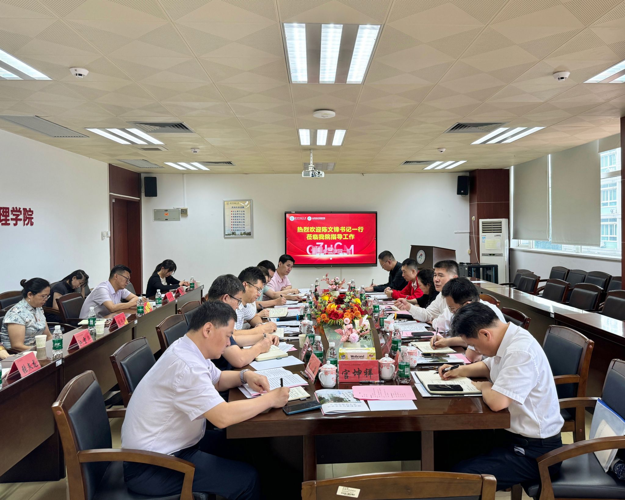 6月4日下午,学校党委书记陈文锋带队到公共卫生与管理学院,围绕学院党委开展党纪学习教育、学院党政领导班子落实“1+5”作风建设总要求和大兴“八大作风”等情况进行调研。学校党委常委、副校长潘华峰参加调研。