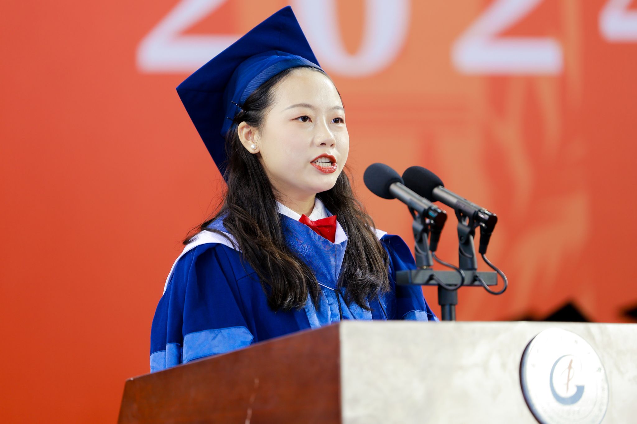 优秀毕业生代表、针灸康复临床医学院针灸推拿学专业硕士研究生颜嘉丽分享了她积极响应“到祖国和人民最需要的地方去”号召,参与2022年大学志愿服务西部计划全国项目服务于新疆维吾尔自治区巴音郭楞蒙古自治州且末县人民医院的难忘经历,号召大家一起接过西部计划接力棒、百年岐黄的接力棒、中华民族伟大复兴的接力棒。