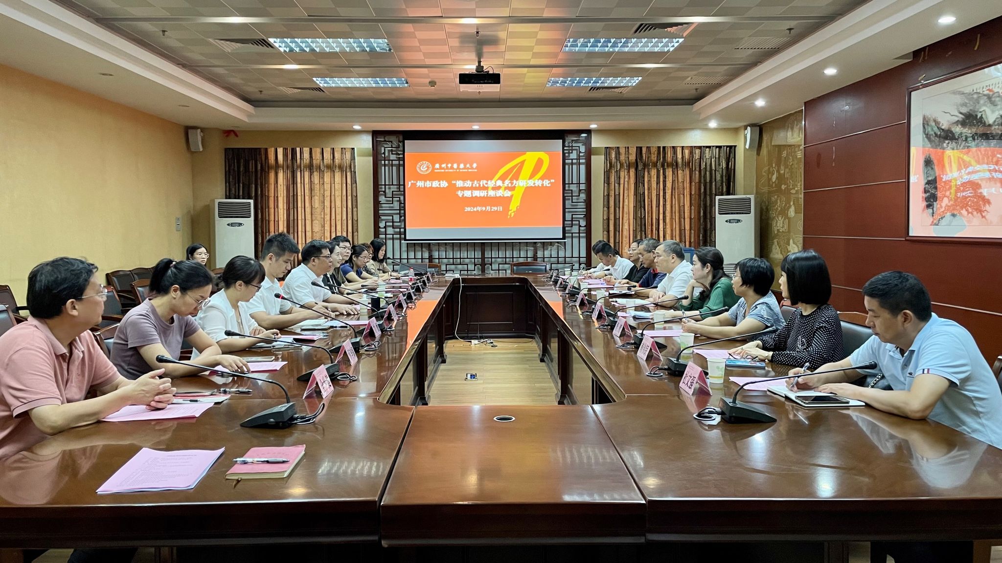 9月29日上午,广州市政协城建资源环境委主任、一级巡视员陈小华率队到taptap点点大学城校区开展“推动古代经典名方研发转化”专题调研。学校党委副书记邱亚洪出席座谈交流会。