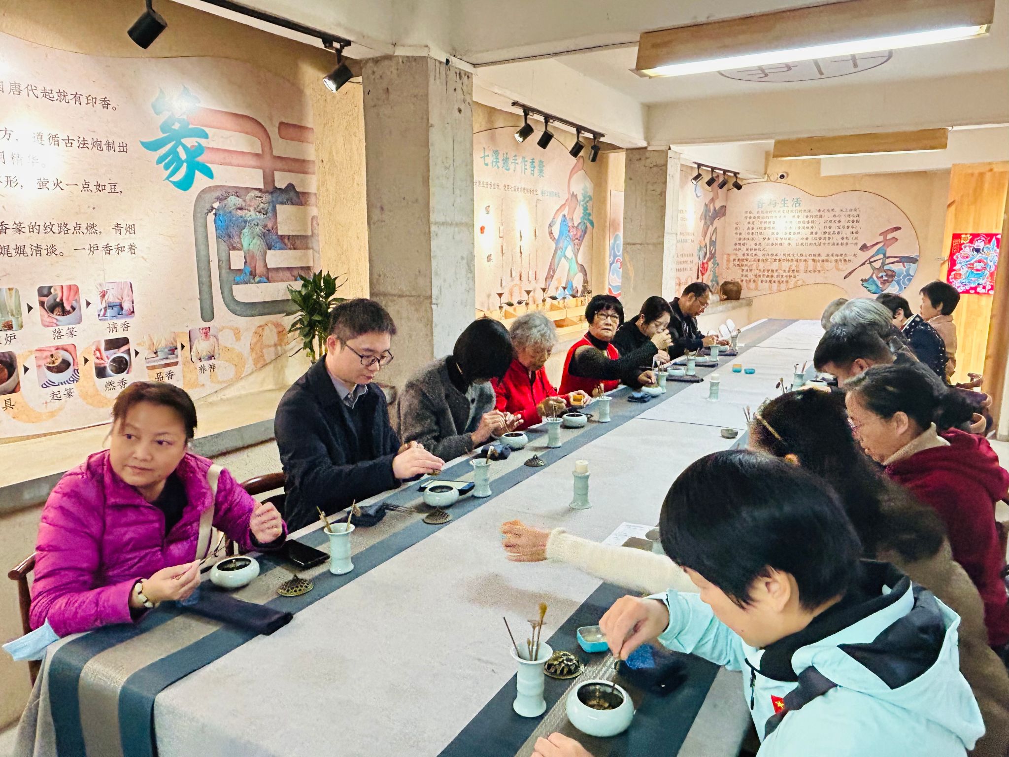 工作总结会前,民盟taptap点点委员会的盟员们开展了学习调研活动。花都七溪地被誉为现存“中国最老的香坊”。盟员们在此深入学习了解广东在传统经济文化生活中极具突出贡献的芳香产业。在天然芳香植物资源核心区,盟员们通过观叶闻香的方式,对百余个天然芳香植物群落进行观察,深度认识了中国长达五千年辉煌灿烂的芳香历史。据悉,两千年来广东一直是中国的芳香生产中心,而七溪地更是历史悠久的芳香故园。此地千百年来,世世代代以香为生、以香为业,曾呈现出“村村有香场、户户都制香”的繁荣景象。这里至今保留着6个古法制香作坊,是人证、物证、史证三证俱全的古香坊。其古法制香技艺与香茶技艺,双双成为非物质文化遗产,成为中国飘香千年芳香文化的生动见证与缩影。