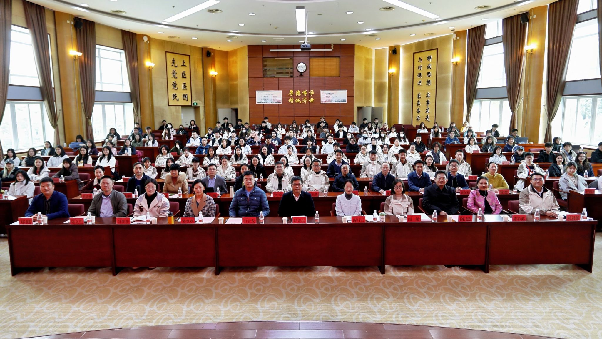 学校各民主党派、统战性社团教师代表,党委宣传统战部、港澳台和外事工作部、国际学院师生代表,新时代民主党派人士政治能力提升培训班、“中国情·华夏行”国情研学营(重庆站)全体参训学员共计150余人参加了汇报会。