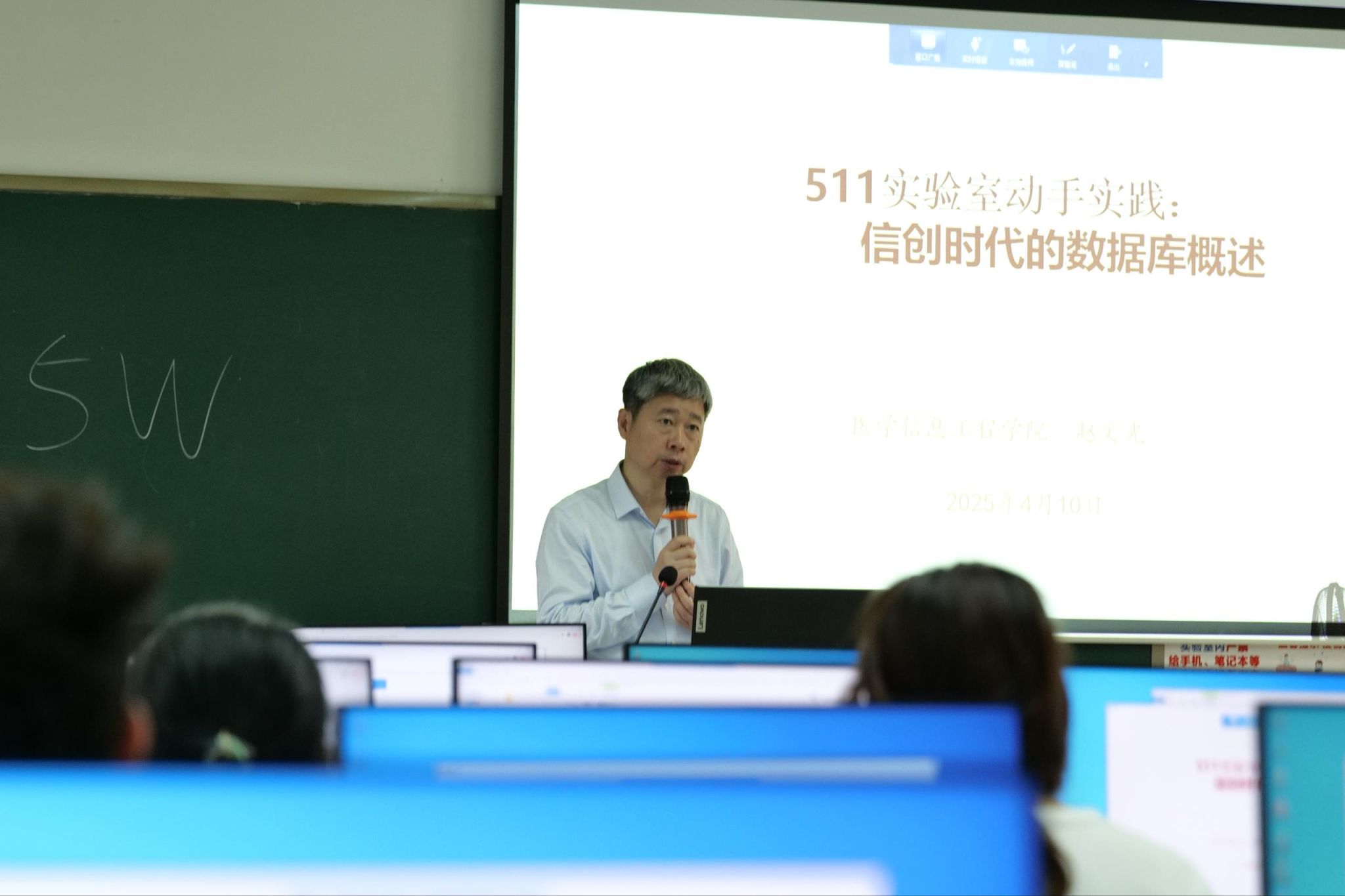 同日下午,医工楼301课室开展着一场面对面的沉浸式动手实践交流。院长赵文光通过“全流程实操+真实案例”的创新模式,指导学生动手操作信创数据库安装配置到性能调优的全过程。