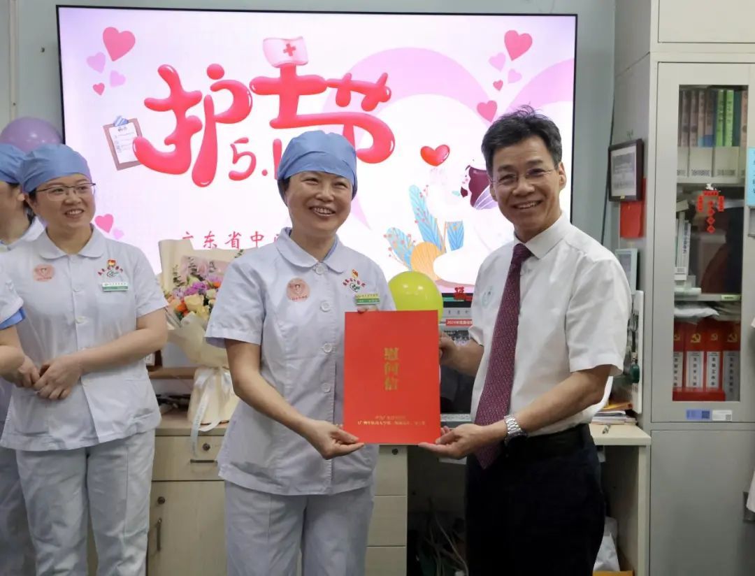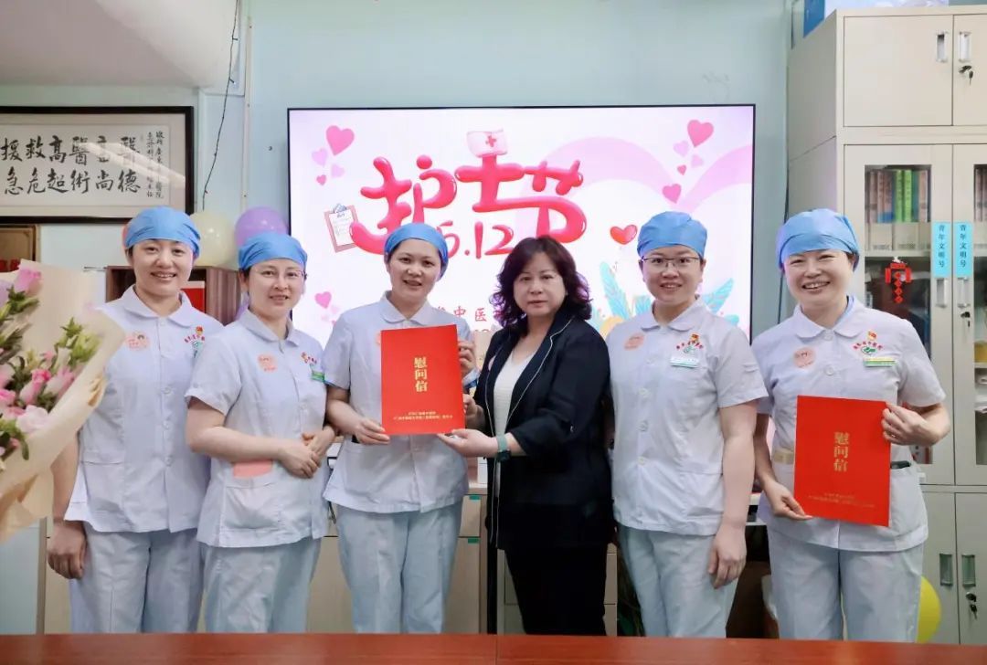 在第114个国际护士节来临之际,5月12日,学校党委常委、副校长、第二附属医院(广东省中医院)院长张忠德,医院党委书记史俏蓉,带领医院领导班子及相关职能部门负责人前往临床一线科室,为辛勤工作的护士们送上了特别定制的节日蛋糕和节日祝福,第二附属医院(广东省中医院)珠海医院、贵州医院和海南医院也同步开展慰问活动。