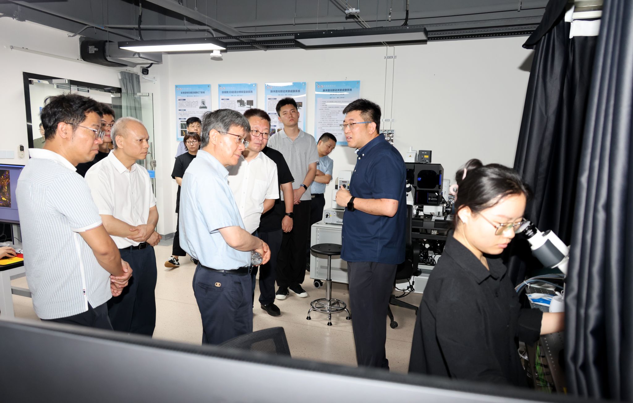 沈建忠副主任对融创平台的前瞻性发展定位给予高度评价,并实地考察了科创中心内的空间定位组学系统、高通量GPCR及离子通道分析系统、激光共聚焦高内涵成像分析系统等六大功能区的高端科研设施。