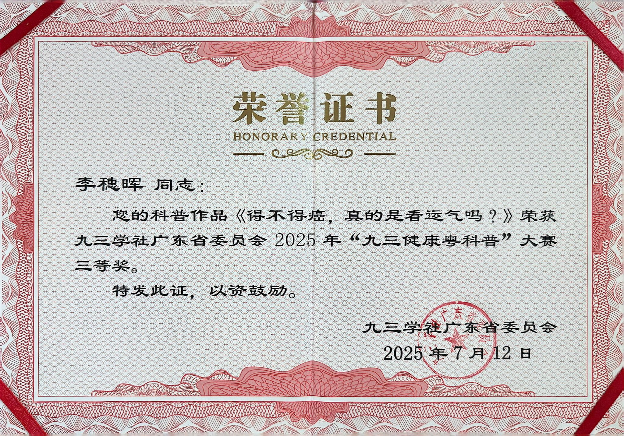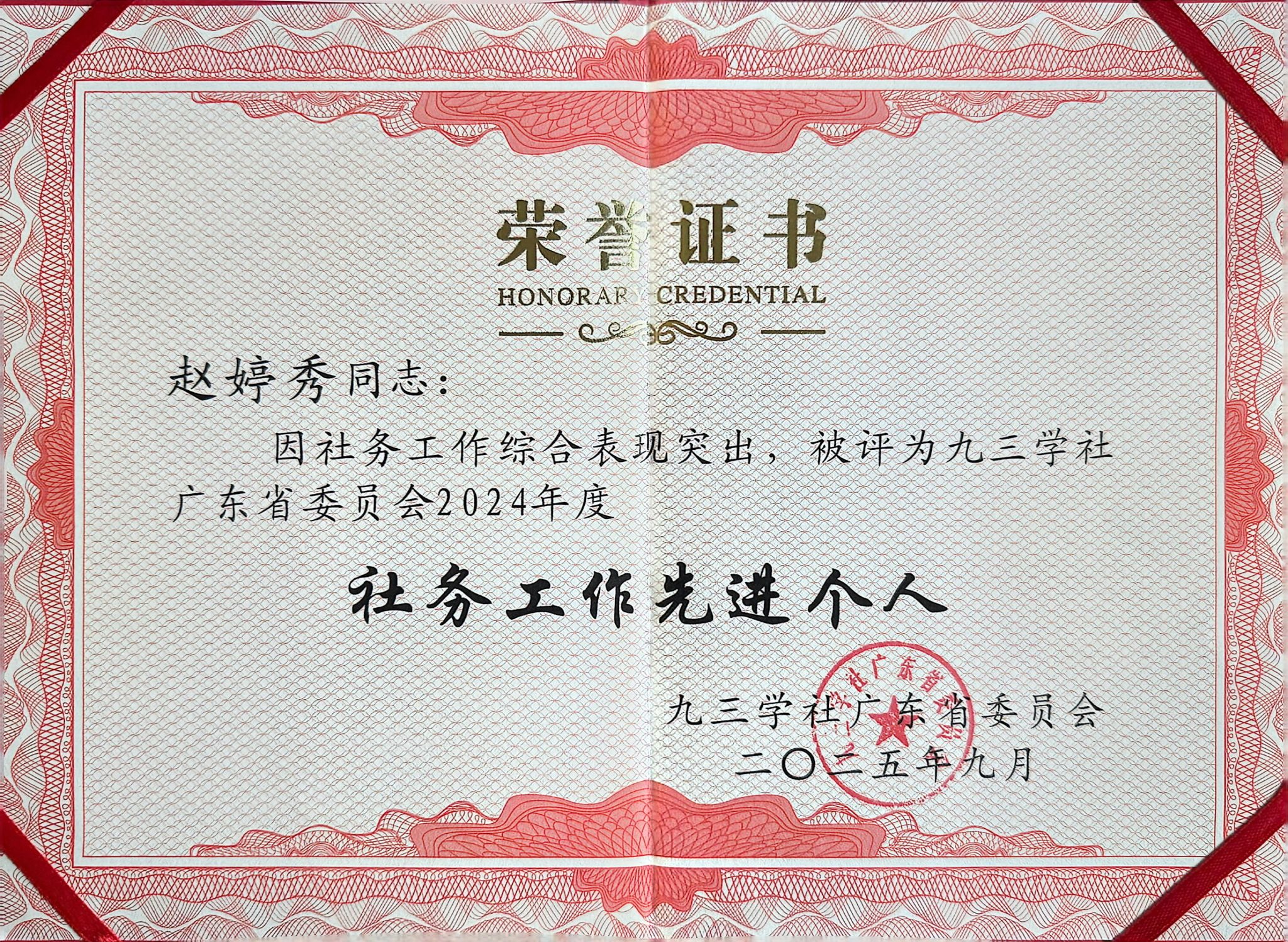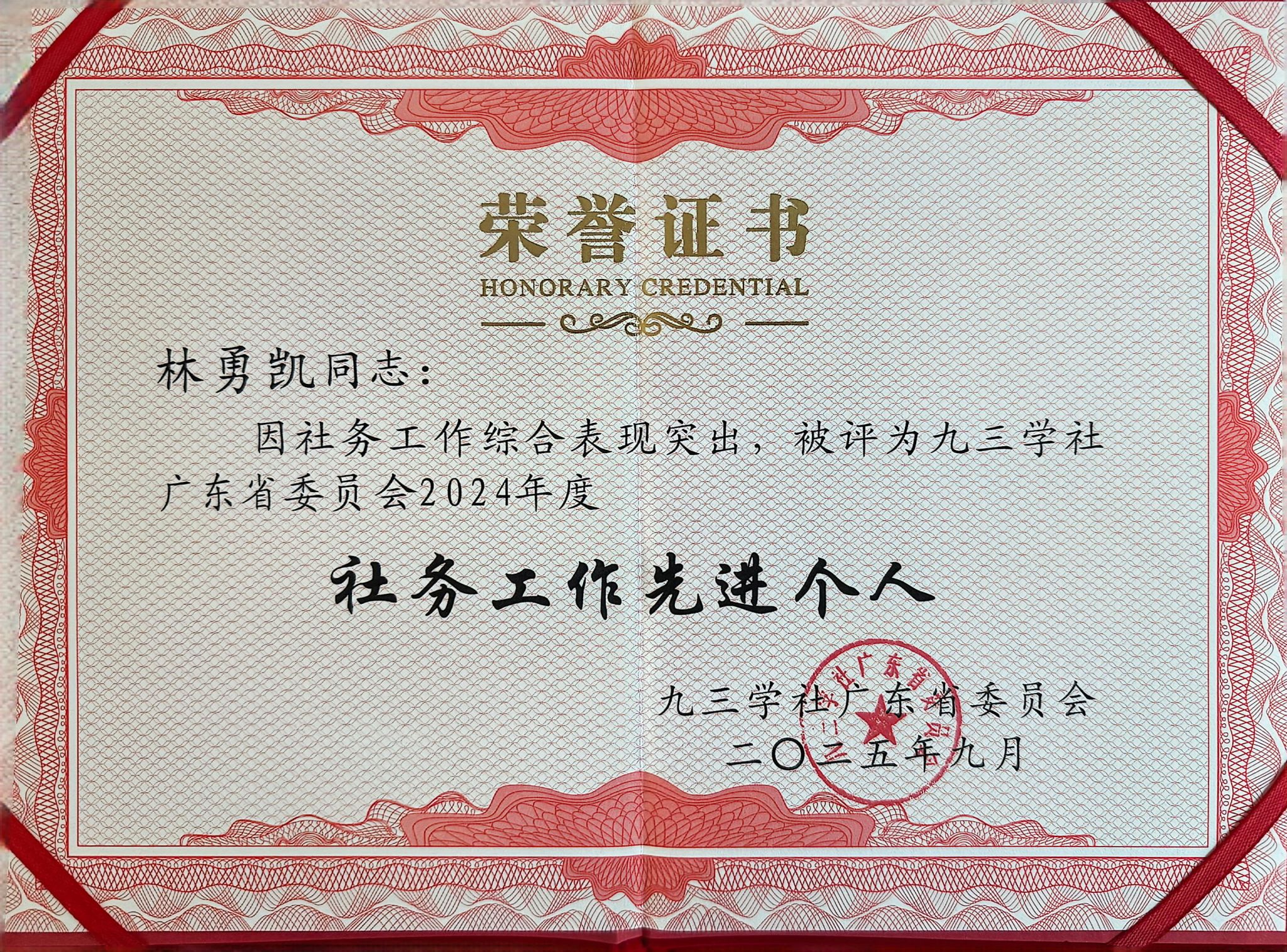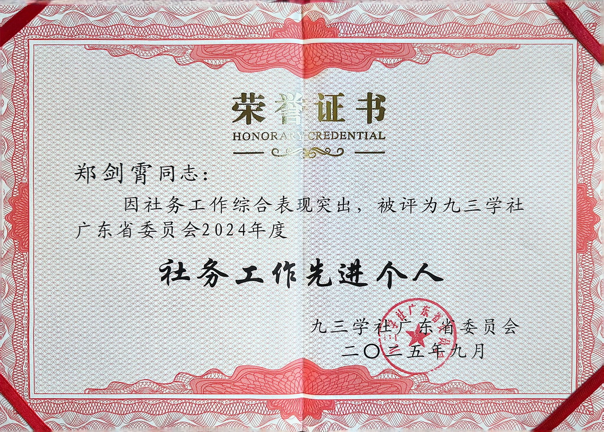 9月1日,九三学社广东省委会召开庆祝九三学社创建80周年大会,九三学社taptap点点基层委员会多位社员获得省级表彰。郑剑霄、赵婷秀、林勇凯、蒋志四位社员荣获2024年度“社务工作先进个人”称号,李穗晖社员荣获“九三健康粤科普大赛”三等奖。