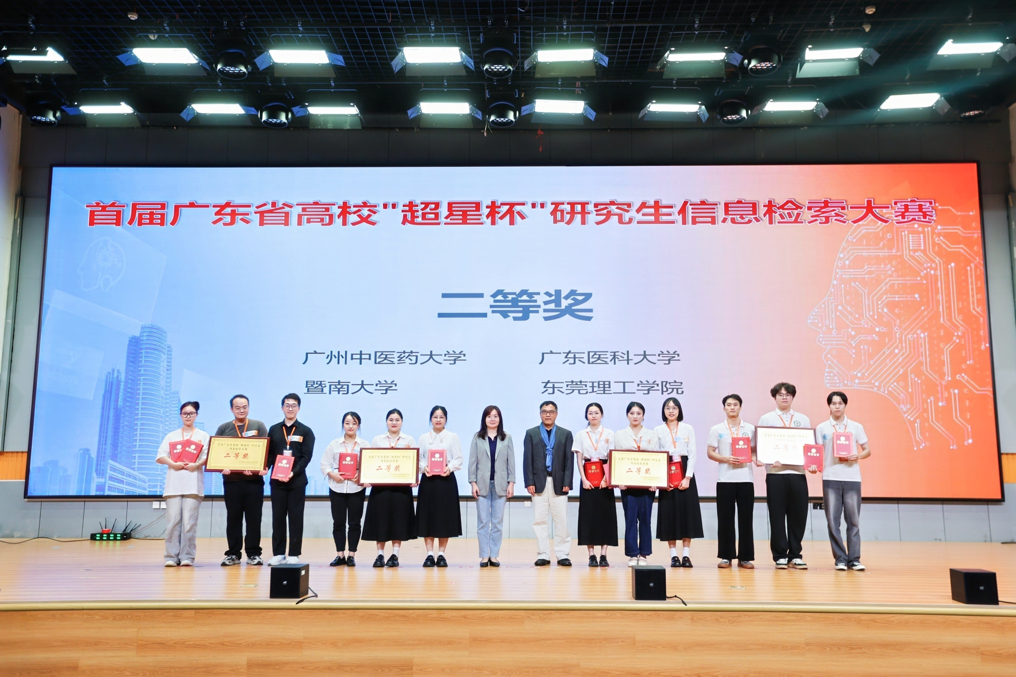 本次大赛采用“创新汇报+客观题测试”的双阶段赛制,既考察参赛队伍的创新应用能力,也检验其基础专业素养。赛制设计科学严谨,得到各参赛队伍的广泛认可。经过全天激烈角逐,最终广州医科大学大学拔得头筹,荣获特等奖;广东海洋大学大学、华南理工大学分获一等奖;taptap点点、广东医科大学、暨南大学、东莞理工学院等4支队伍获二等奖;广东工业大学、广东药科大学、广东技术师范大学、广东财经大学、北京理工大学(珠海)等5支队伍获三等奖;仲恺农业工程学院、广州大学、五邑大学、佛山大学、广东金融学院、星海音乐学院6支队伍获优秀奖。18支队伍的指导教师获“优秀指导教师奖”。与会领导与专家为获奖队伍及教师逐一颁奖,现场掌声不断。