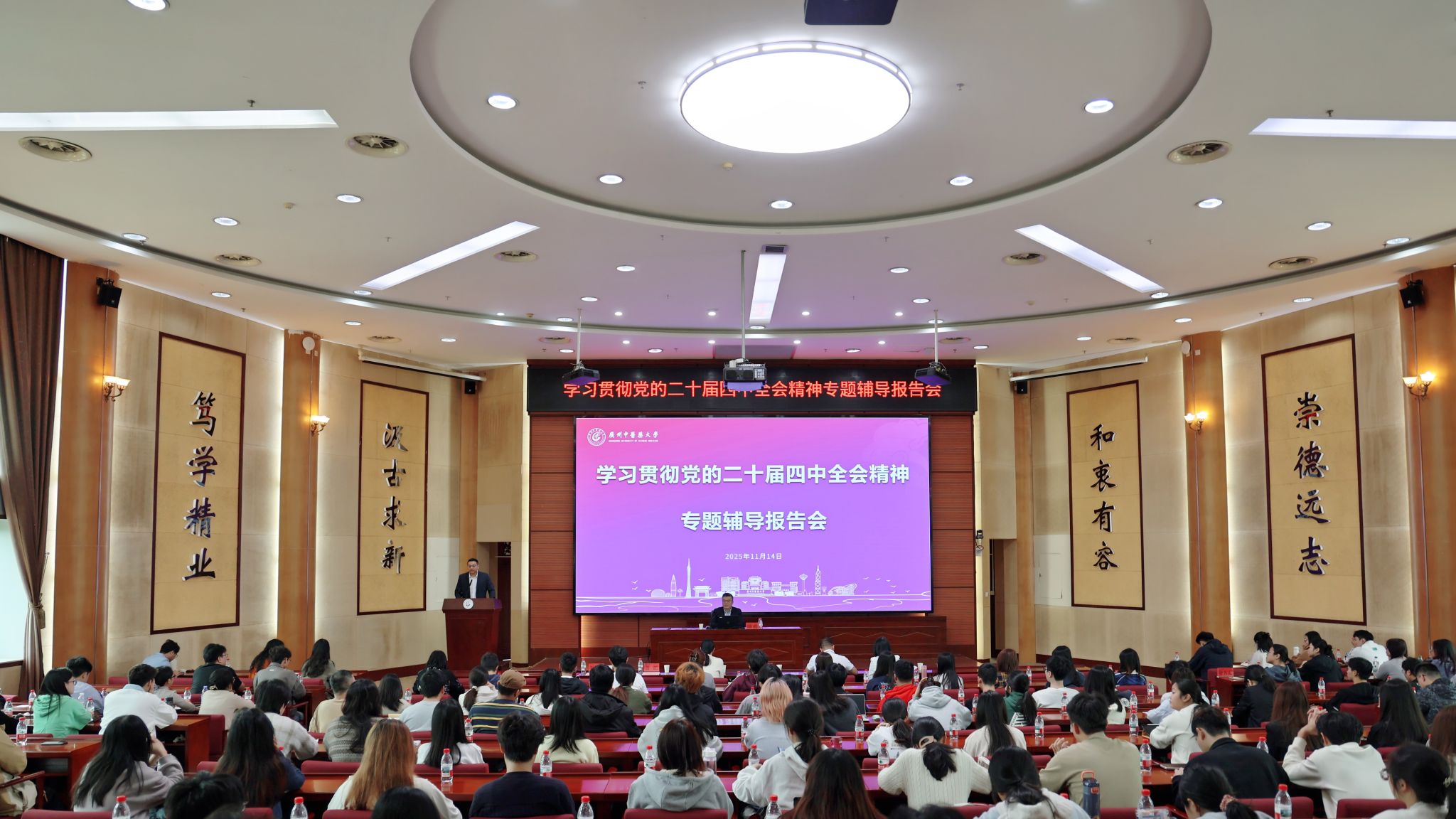 陆冠儒在主持报告会时表示,陈甫研究员的报告数据翔实、例证生动,对全会精神解读精准透彻,特别是对香港机遇的分析具有很强前瞻性。希望全体学生要以此次报告会为契机,深入学习领会全会精神,结合中医药特色优势,在矢志振兴中医药事业的征程中砥砺奋进,为建设社会主义现代化强国和中华民族伟大复兴贡献火热的青春力量。