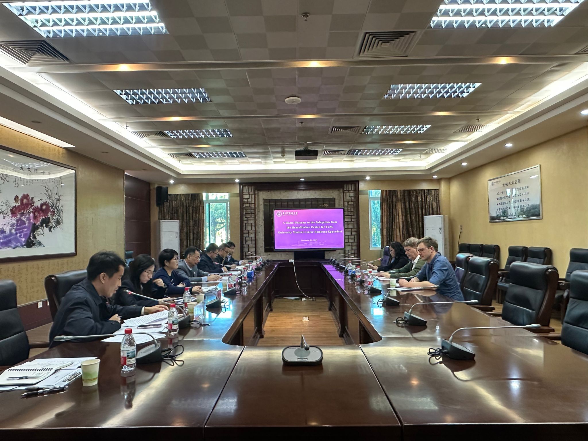 郭鸿对代表团一行的到访表示欢迎,并介绍了学校的办学历程、学科优势及国际合作成果。他表示,希望进一步开展师生互访,联合培养高层次中医药人才;聚焦重点科研领域,推动中医药标准国际化;借此契机拓展与德国汉堡大学的全方位合作,共同探索中医药在欧洲的发展新路径。