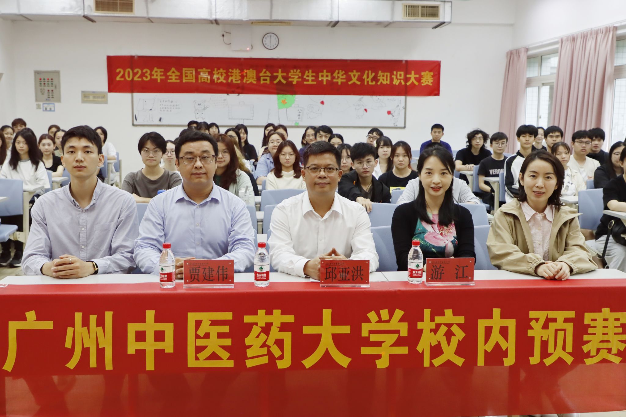 学校党委副书记邱亚洪亲临比赛现场,对参赛的港澳台同学和港澳台办的老师们提出了三点寄望。一是希望同学们以比赛促学习,做中华优秀传统文化的传承者,坚定文化自信,讲好中国故事,传播好中国声音。二是希望同学们积极进取,奋力拼搏,冲出复赛,闯入决赛,勇夺冠军。三是希望老师们认真组织,助力选手参赛,为学校争光。