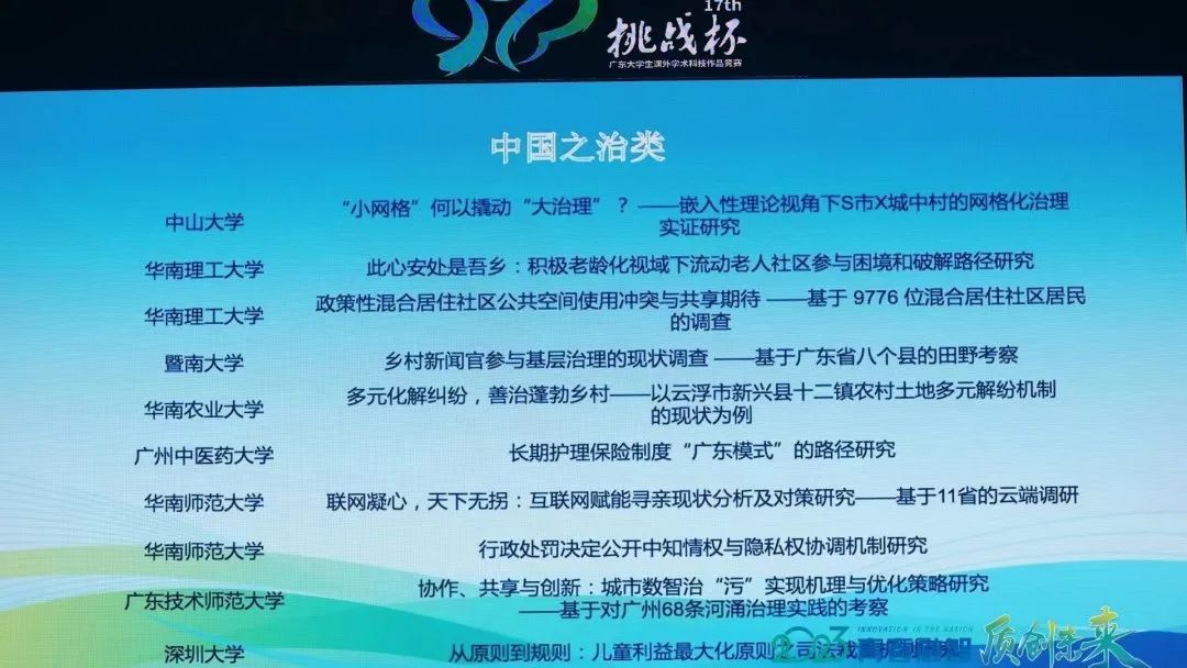 为备战本届“挑战杯”省赛,我校经过长达8个月的校内初赛、复赛和决赛选拔,在334项作品中评审出了24项作品进入省赛复赛,15项作品入围终审决赛。最终有2项作品荣获特等奖,我校喜获“优胜杯”。