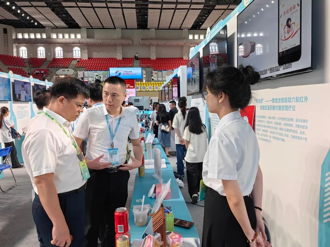 学校领导对本次赛事高度重视、多次关心。学校党委副书记邱亚洪赛前出席“挑战杯”工作推进会并对省赛相关工作进行部署,向参赛同学代表授旗,赛事期间专门到比赛现场看望参赛同学,为他们加油鼓劲。上级领导和组委会专家也到展位与我校学子亲切交流,15件作品充分展现了广中医学子砥砺奋进的青春风貌。未来我校还将以“挑战杯”系列赛事为牵引,鼓励广大学子聚焦前沿领域,勇攀学术高峰,努力成为具有挑战思维、挑战精神、创新能力的能够担当民族复兴大任的时代新人。