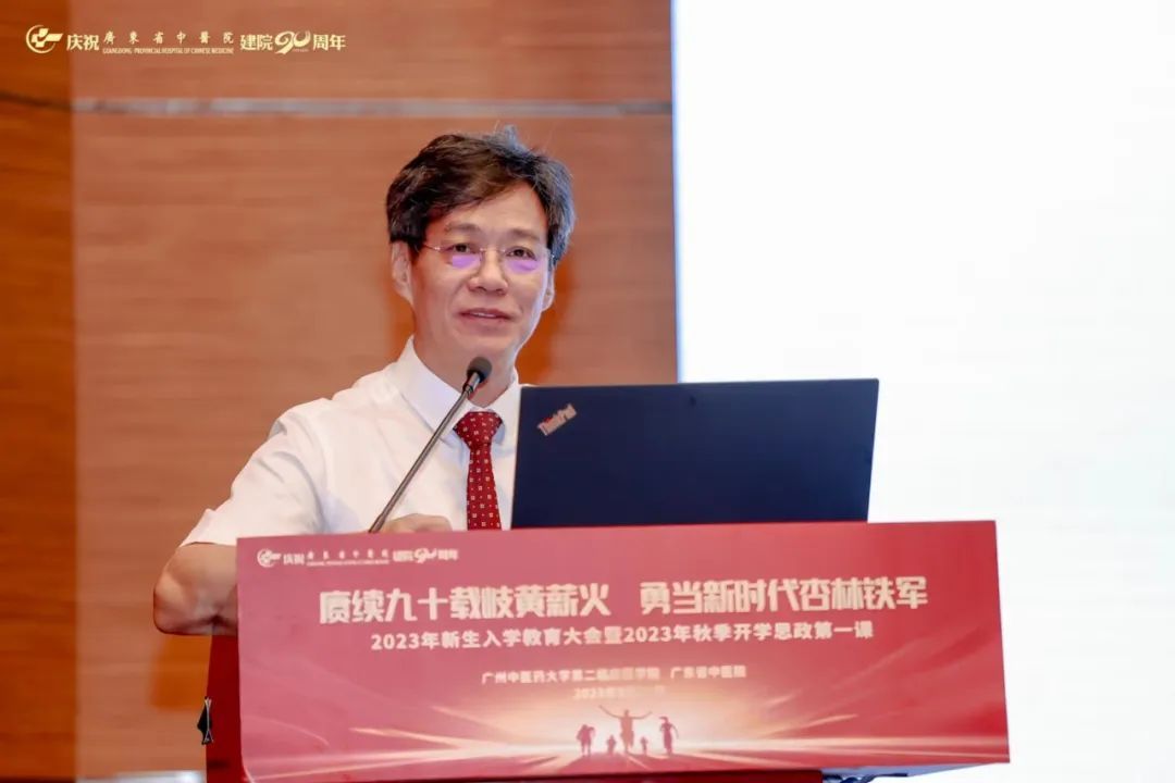 9月23日,taptap点点第二临床医学院2023年新生入学教育大会暨2023年秋季开学思政第一课在大学城医院学术报告厅举行。学校党委常委、副校长、第二临床医学院(第二附属医院、广东省中医院)院长张忠德讲授“思政第一课”。