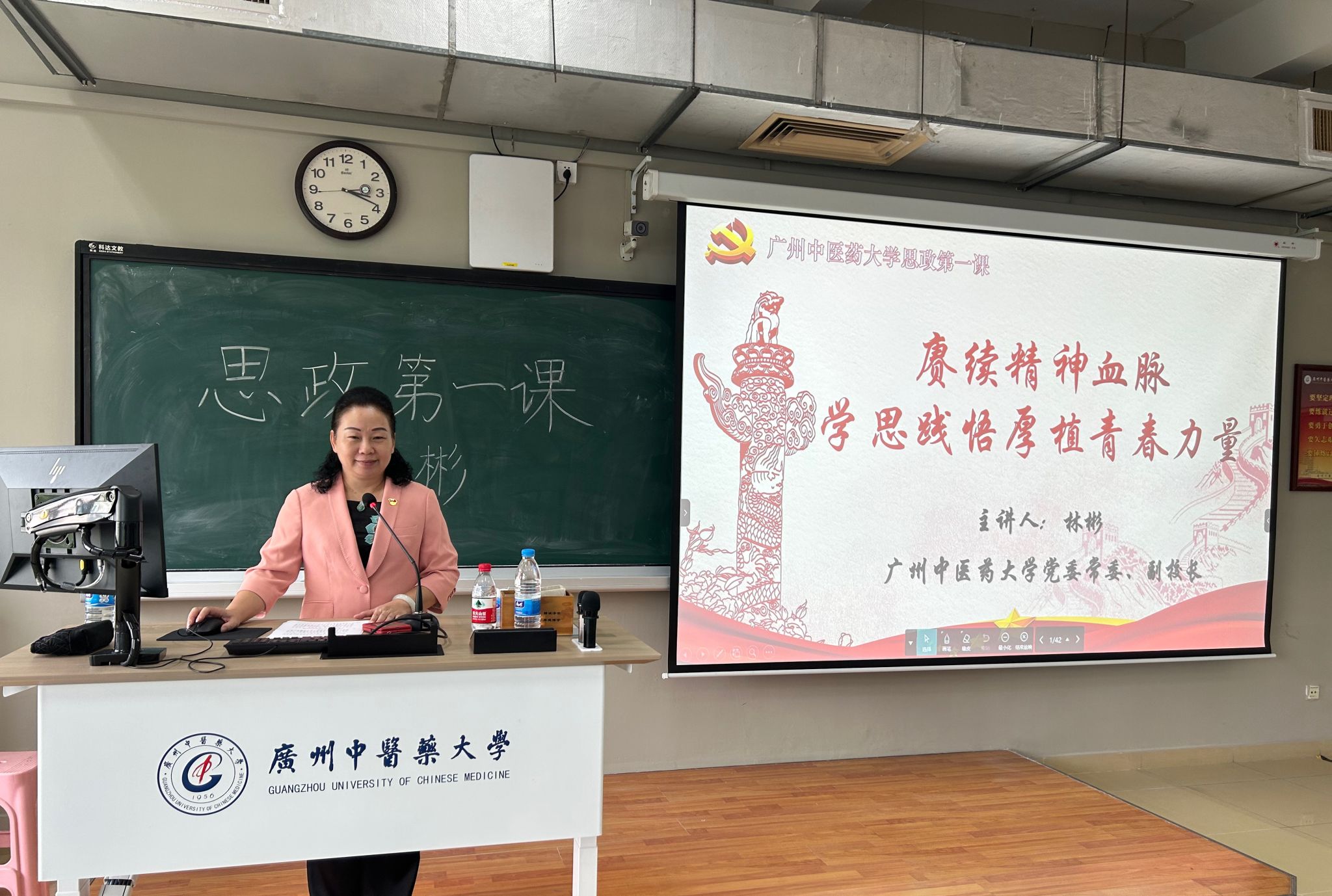 10月17日下午,学校党委常委、副校长林彬以“赓续精神血脉,学思践悟厚植青春力量”为题,在大学城校区教学楼A408课室为体育健康学院2023级体育教育专业全体新生讲授“思政第一课”。