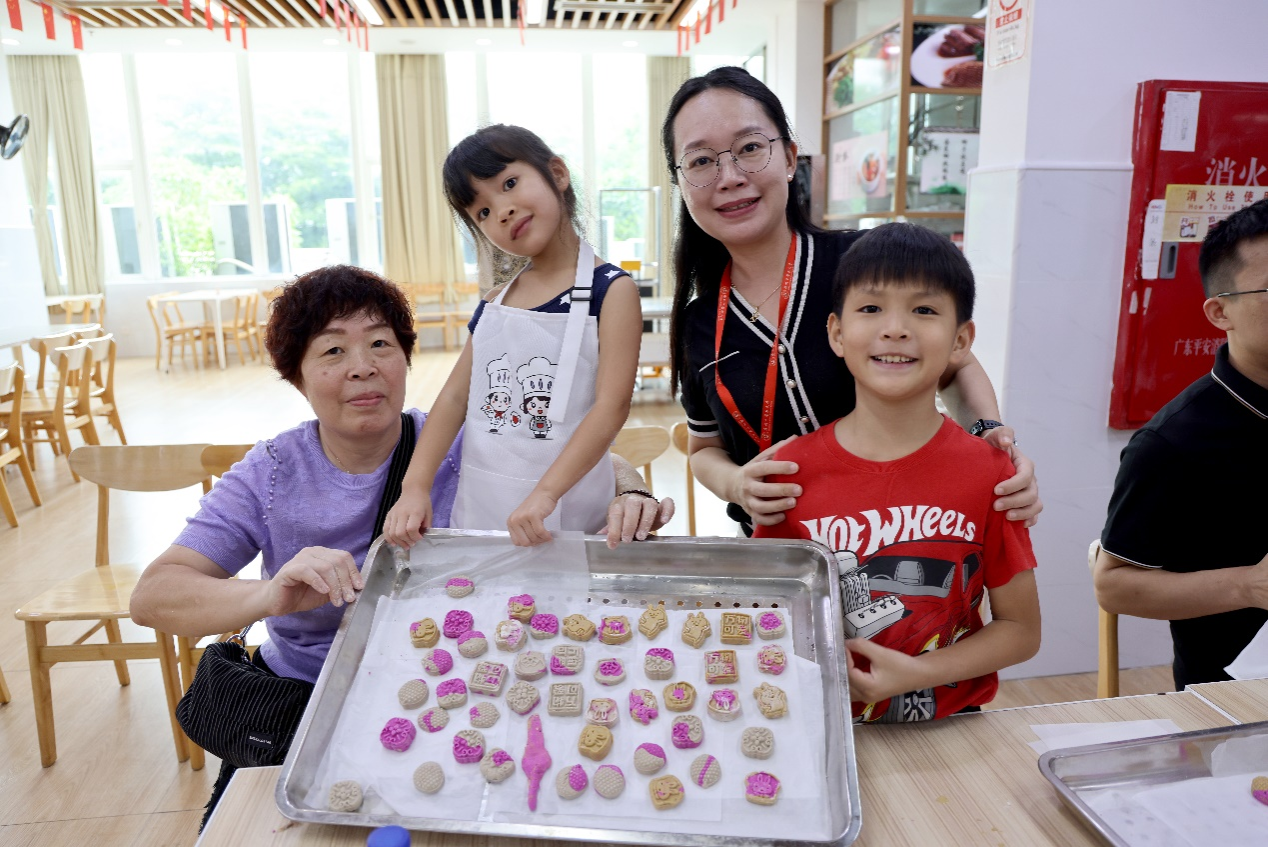 为了增加糕点制作的趣味性,面点师傅将面团用赤色的红心火龙果汁、黄色的南瓜汁、绿色的艾叶汁调色,揉好红、黄、绿三种颜色面团分给每组家庭。小朋友拿着风格不一的模具,按压出“花生”“万物可爱”“花朵”“胡萝卜”“冰激凌”“小兔子”等图样的八仙长寿糕。通过砸金蛋、洞洞乐等游戏,学习中医“天人相应”的理念和传统端午文化,把中医养生食疗融入到端午节庆食品的制作,让孩子们在劳动中体验到收获的喜悦,对中医食疗和健康生活有了初步印象。