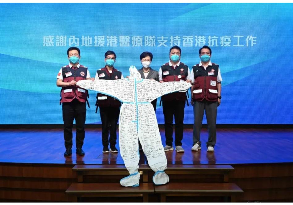 内地援港医疗队:张忠德、郑丹文、谢东平、吴广平、陶兰亭、张军、王维亮、黄凯峰、凌传仁、陈维生、方坤洋、王二岭、庾浩坚、李观康、陈海振、李志方、陈名桂、李醒龙、王新、罗景和、陈汉利、欧德华、刘昶良、李上志