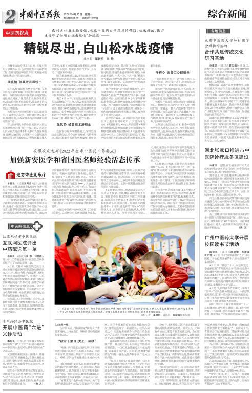 链接:http://paper.cntcm.com.cn/bz/html/content.html?date=2022-04-25&pageIndex=2&cid=1&articleId=C-BfXoABNjok0KNrwlWW&articleIndex=6
