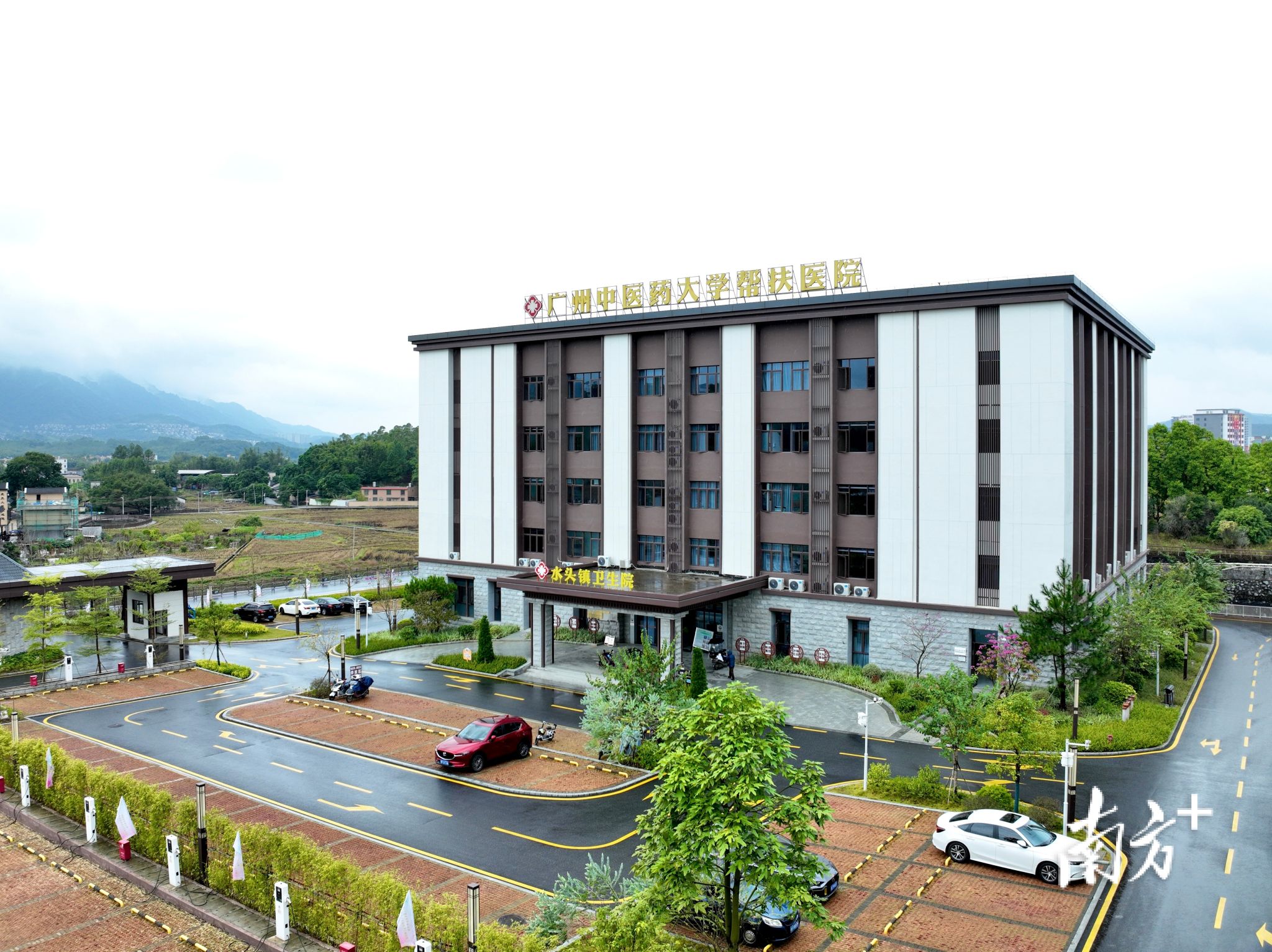 远远望去,水头镇卫生院在青山的映衬下显得格外庄重大气。楼顶上挂着的“taptap点点帮扶医院”标识,透露着这家小镇卫生院声名大噪的秘诀。