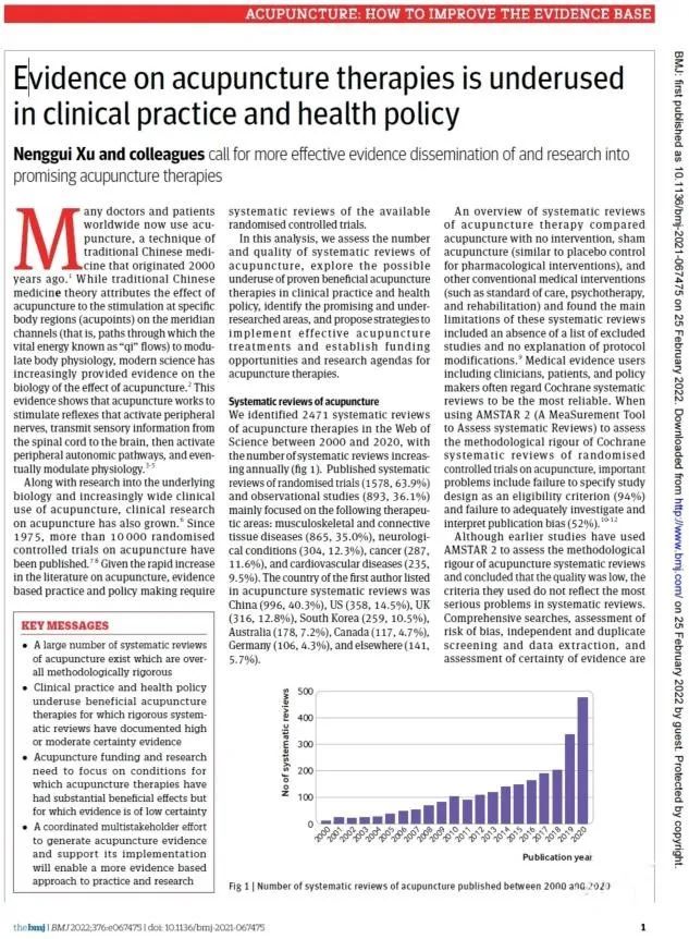 2019年,许能贵团队科学阐明了针刺百会、大椎治疗缺血性中风的神经生物学机制,获得了国家科技进步奖二等奖。Epistemonikos已成为最大的健康证据数据库之一,包括超过10万条系统评价和数十万条个人研究。《英国医学杂志》是英国医学会会刊,是世界四大顶级医学期刊之一,与《新英格兰医学杂志》《柳叶刀》及《美国医学会杂志》齐名。