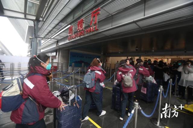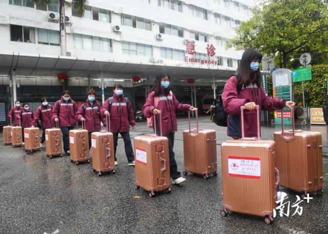 “香港加油!”2月19日上午12时,寒风细雨中,广东省中医院派出的21名工作队员集结完毕,整装待发。