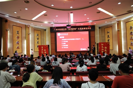 宣讲会上,不仅有红色故事宣讲,还有党史知识问答、舞台剧《药房烈士》表演。通过场景化、沉浸式的舞台剧表演,生动地诠释了共产党人坚定信仰的赤忱之心,彰显鞠躬尽瘁、死而后已的革命精神。广大师生表示,这场宣讲不仅是一堂生动的党史学习教育课,也是传承红色基因,赓续红色血脉,讲好杏林红色故事的生动实践。