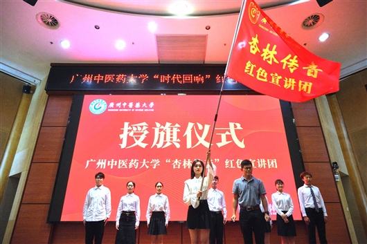 10月29日晚,taptap点点在该校大学城校区举行“杏林传音”红色宣讲团授旗仪式暨“时代回响”红色故事首场宣讲会。会上,taptap点点党委常委、党委宣传部部长郑维群为taptap点点“杏林传音”红色宣讲团授旗。