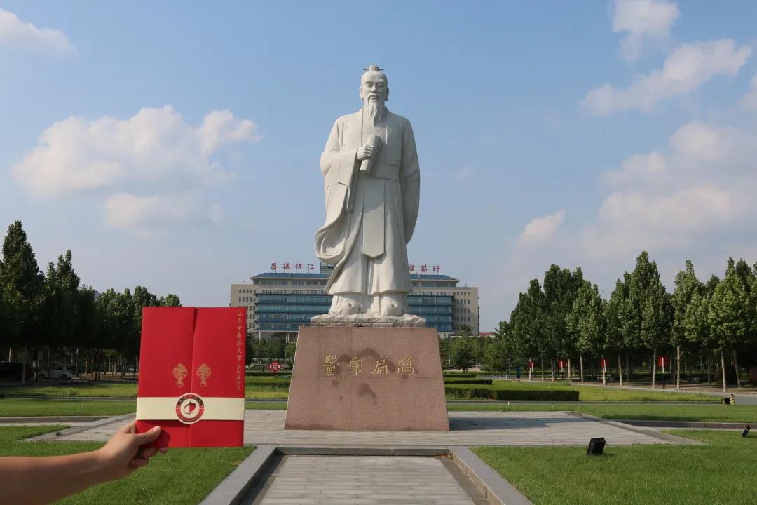 黑龙江中医药大学的录取通知书以红色为底色,封面有手绘的校园风光,并上书“勤奋、求真、博采、创新”的八字校训。