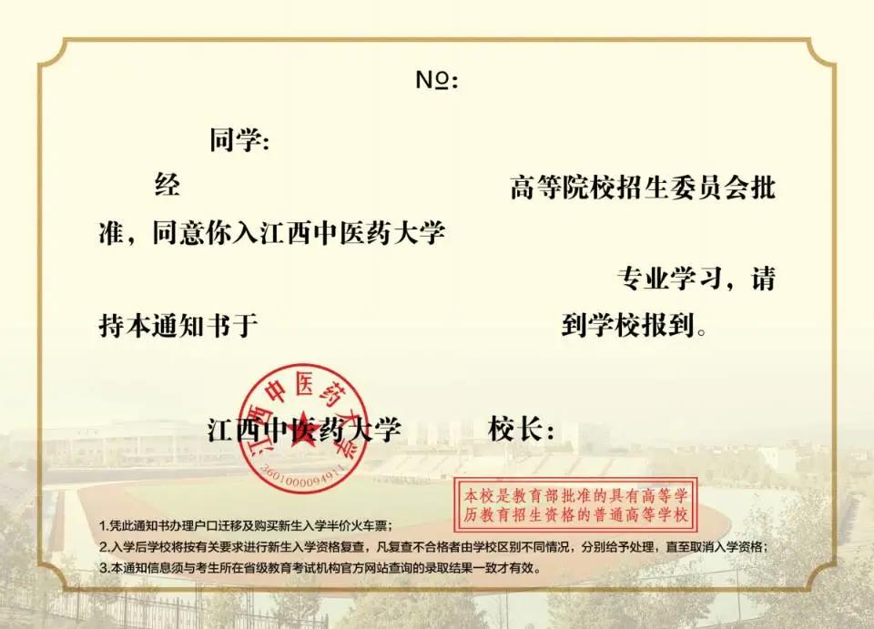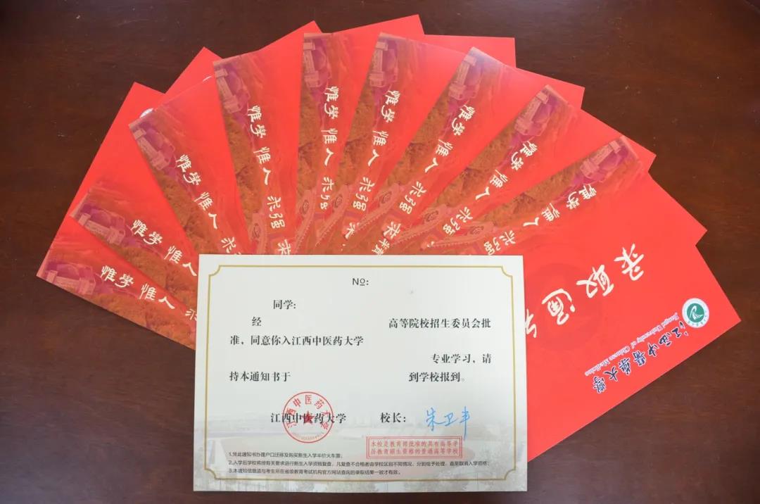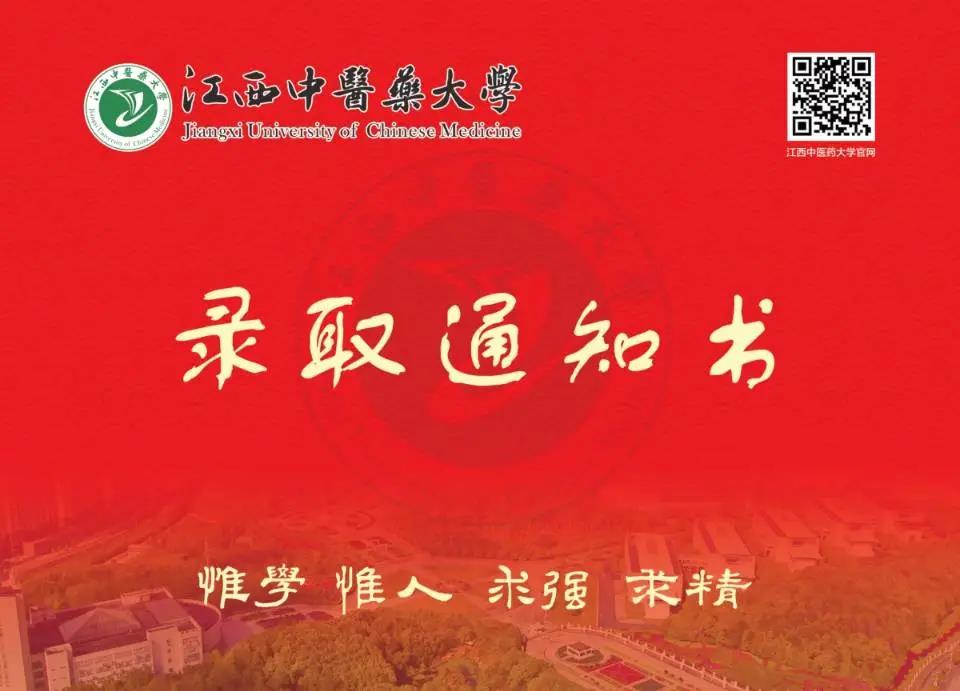 江西中医药大学的录取通知书简单、大方,化繁为简,通知书上写出校训,画出校徽,勾勒出学校的风景。