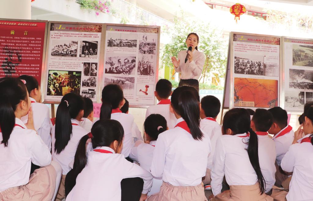佛山市开展“学百年党史,做时代新人”主题征文活动、“百校庆百年”校园巡礼活动、党史知识竞赛、民办学校红歌合唱节等,引领各学校以学生乐于接受、喜闻乐见的形式打造活动课堂,如松岗中心小学开展“童心向党·红色经典”班级文化墙评选活动,映月第五小学举办“迎华诞·颂党恩”千人书法现场展示活动,南海实验中学举行“传承红色基因,灯塔领航青春”少先队离队仪式,以校园活动浸润学生爱党爱国之情。松岗中心小学学生乾琴袖通过党史学习教育,有感而发:“重温百年党史,让我坚定了理想信念,争当有志向的少先队员,接下来,我要将党史学习教育激发出来的斗志和热情转化为学习的动力,做合格的社会主义接班人。”