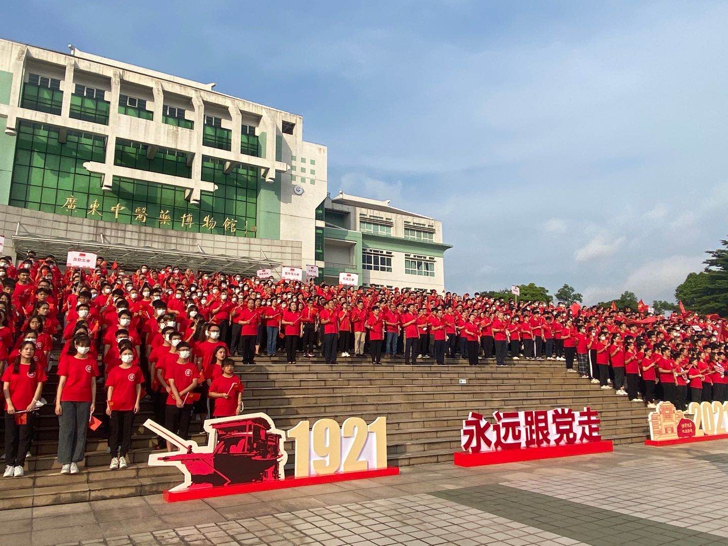 7月1日的清晨,taptap点点的校园里红旗招展、歌声激昂,2600名师生井然有序地站在学校国旗广场上,举行“永远跟党走”升旗仪式暨师生歌咏活动,以饱满的爱党爱国热情庆祝中国共产党成立100周年。