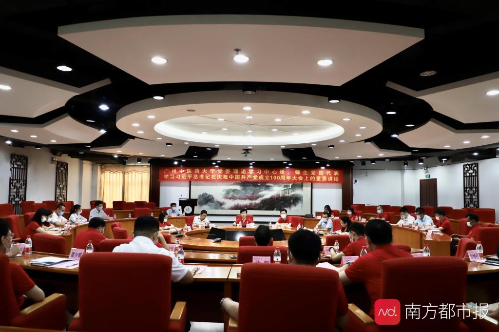 学校党委书记张建华结合学校实际,指出要坚持和加强党对高校的全面领导;要培养胸怀深厚家国情怀、永远跟党走的中医药人;要加强对青年人的教育培养,引导青年学生不负韶华,到祖国最需要的地方。同时,学校要积极融入粤港澳大湾区建设,大力推进学校体制机制创新,推动中医药创新发展和中药产业现代化,进一步推动学校“双一流”和高水平大学建设。