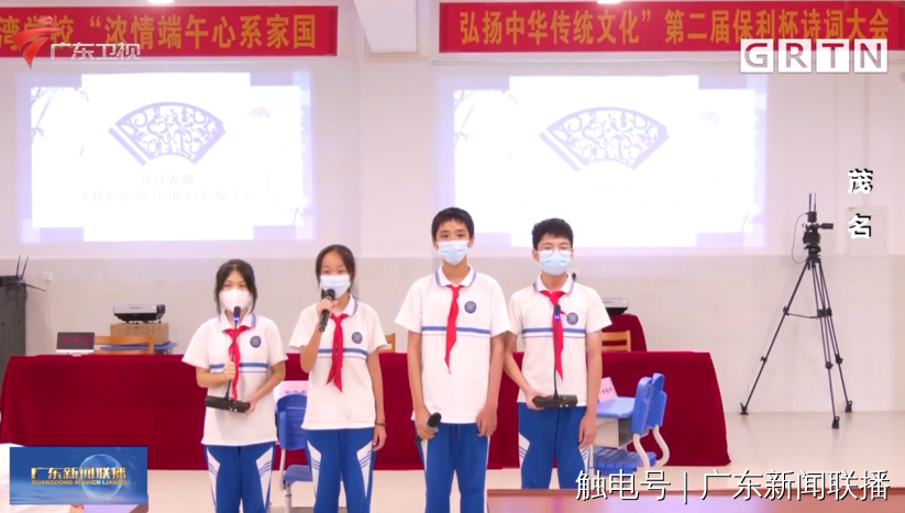 在茂名,一场诗词朗诵正在进行,学生们参加了诗词接力、看图猜诗词、寻诗找词等环节,亲身感受中华诗词的文化之光,增强爱国情怀。